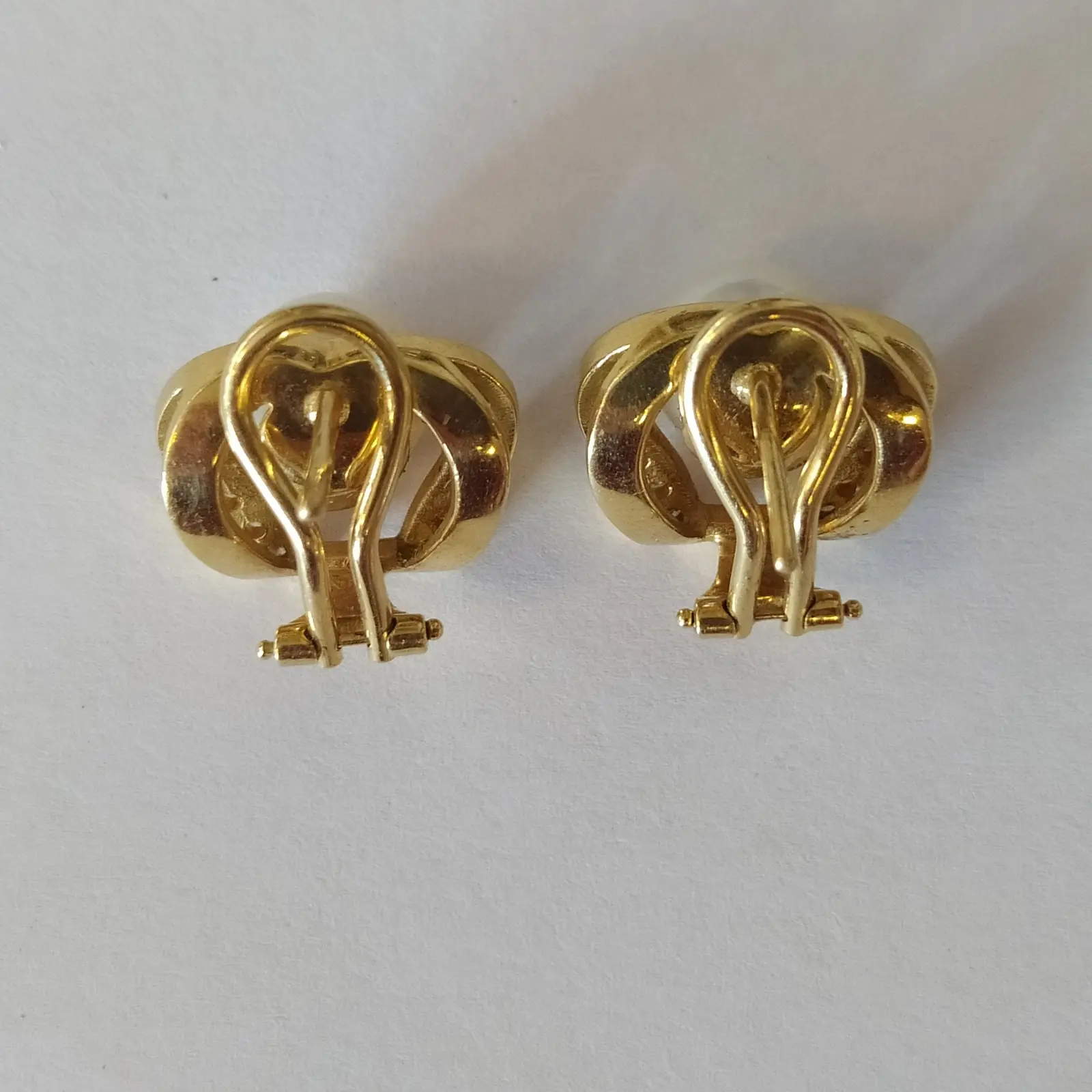 Złoto pr. 0,750 , 2 perły słonowodne , 28 diamentów o masie około 0,14 ct. , barwie F i czystosci SI-VS , waga 11,16 g.  Dołączony certyfikat rzeczoznawcy diamentów Macieja Ożdżeńskiego