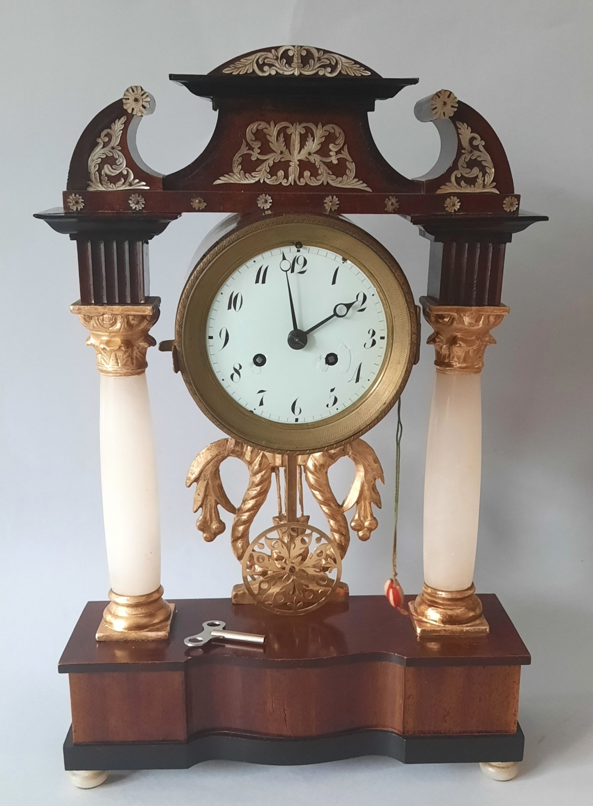 Zegar kominkowy, tzw. portykowy, w stylu biedermeier