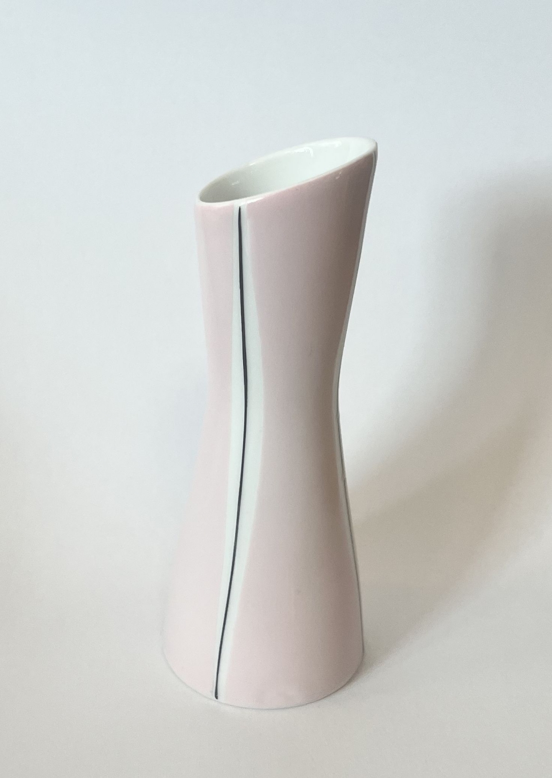 Porcelanowy wazonik "Flora" projektu Danuty Duszniak z 1957 roku,  wyprodukowany przez Zakłady Porcelany Stołowej "Karolina" w Jaworzynie Śląskiej. Wys. 11,5 cm. Lata 50-60. XX wieku. Stan zachowania bardzo dobry.
