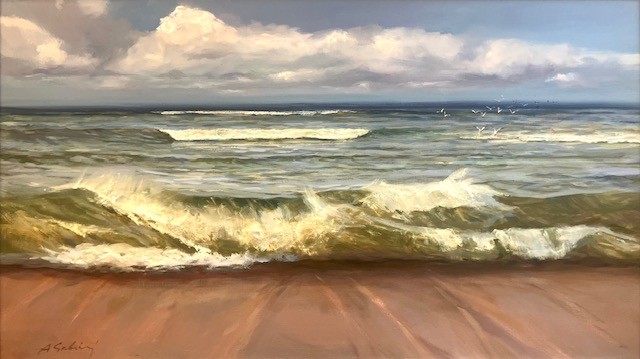 OBRAZ OLEJNY MALOWANY NA PŁÓTNIE, WYM. 75 CM X 130 CM, WYM. Z OPRAWĄ : 79 CM X 134 CM, SYGN. : L./D. " A. Sobieraj ",  2022 ROK .
