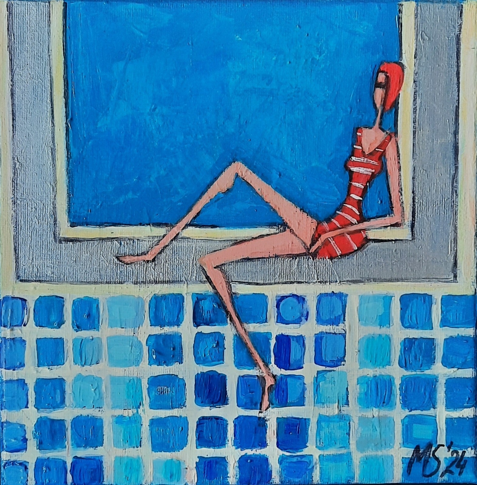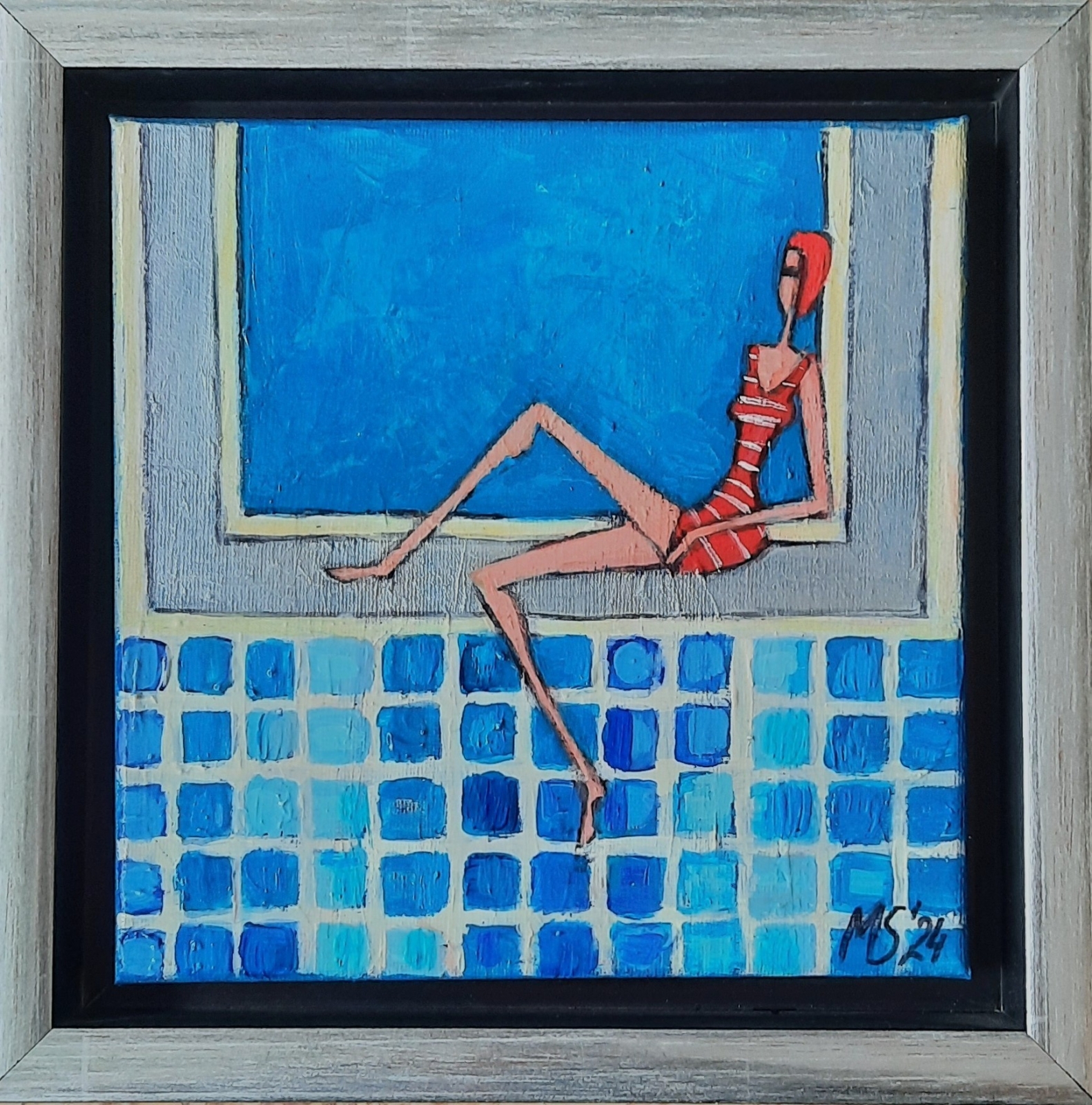 olej / płótno; sygn. p.d. 'MS'24', wymiary: 20 cm x 20 cm; obraz opisany autorsko na odwrocie: 'Małgorzata Stępniak / "Pływaczka" / 20 x 20 / 2024; oprawa listwowa, 2024 r.