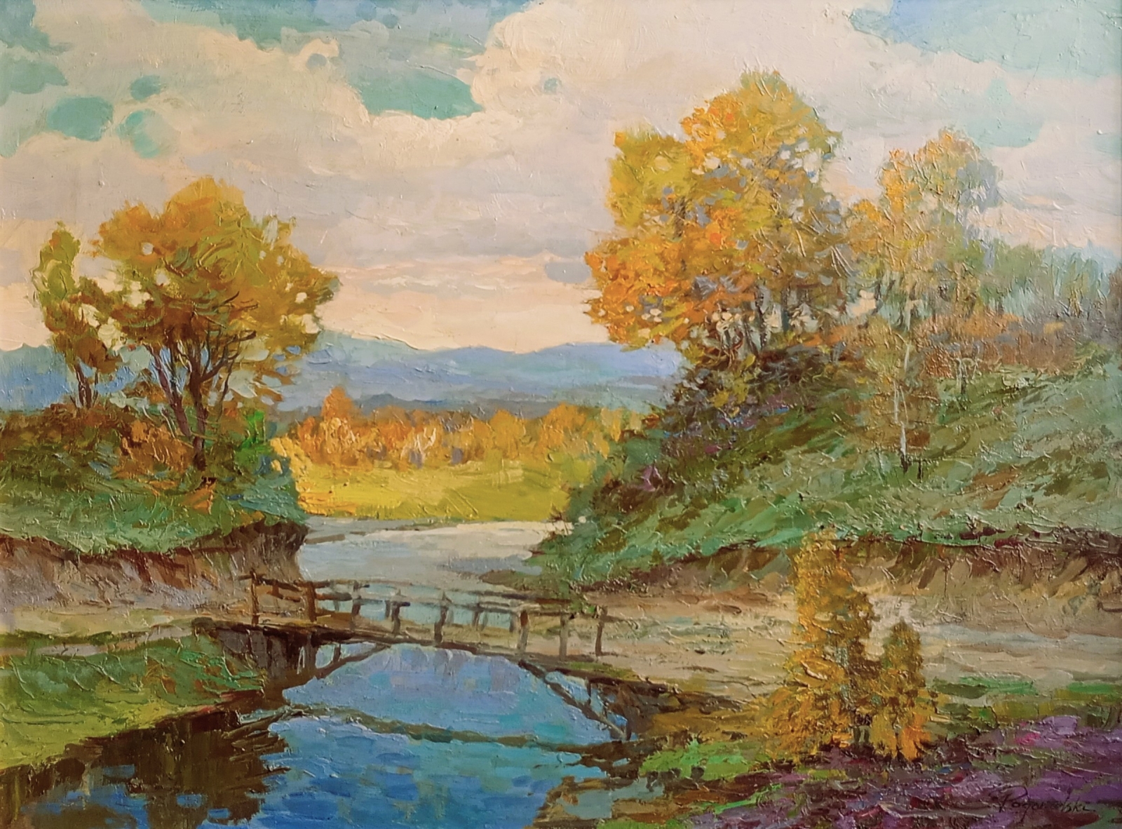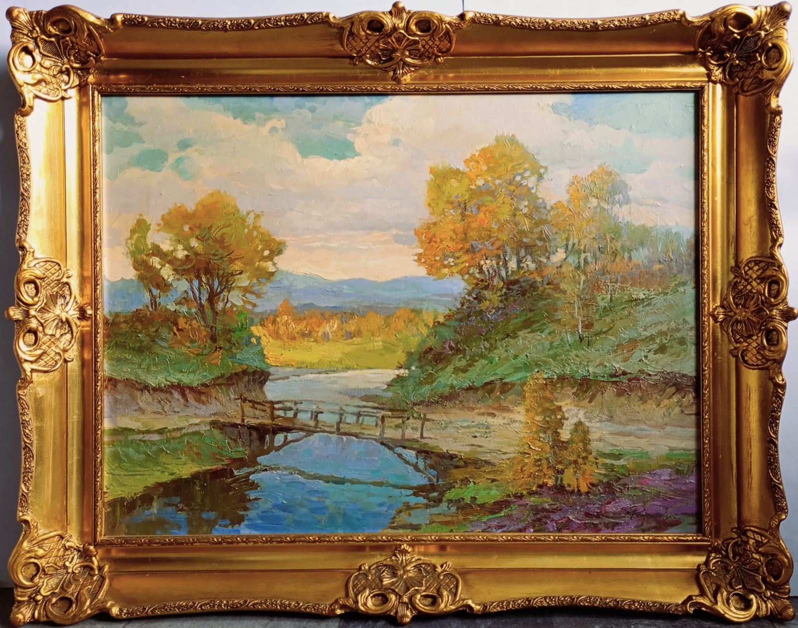 olej / płyta; sygn. p.d. Pogorzelski; wym. 54,5 cm x 73,5 cm; oprawa drewniana, złocona, aplikacje gipsowe; stan zachowania: pożółkły werniks; lata 90-te XX w.