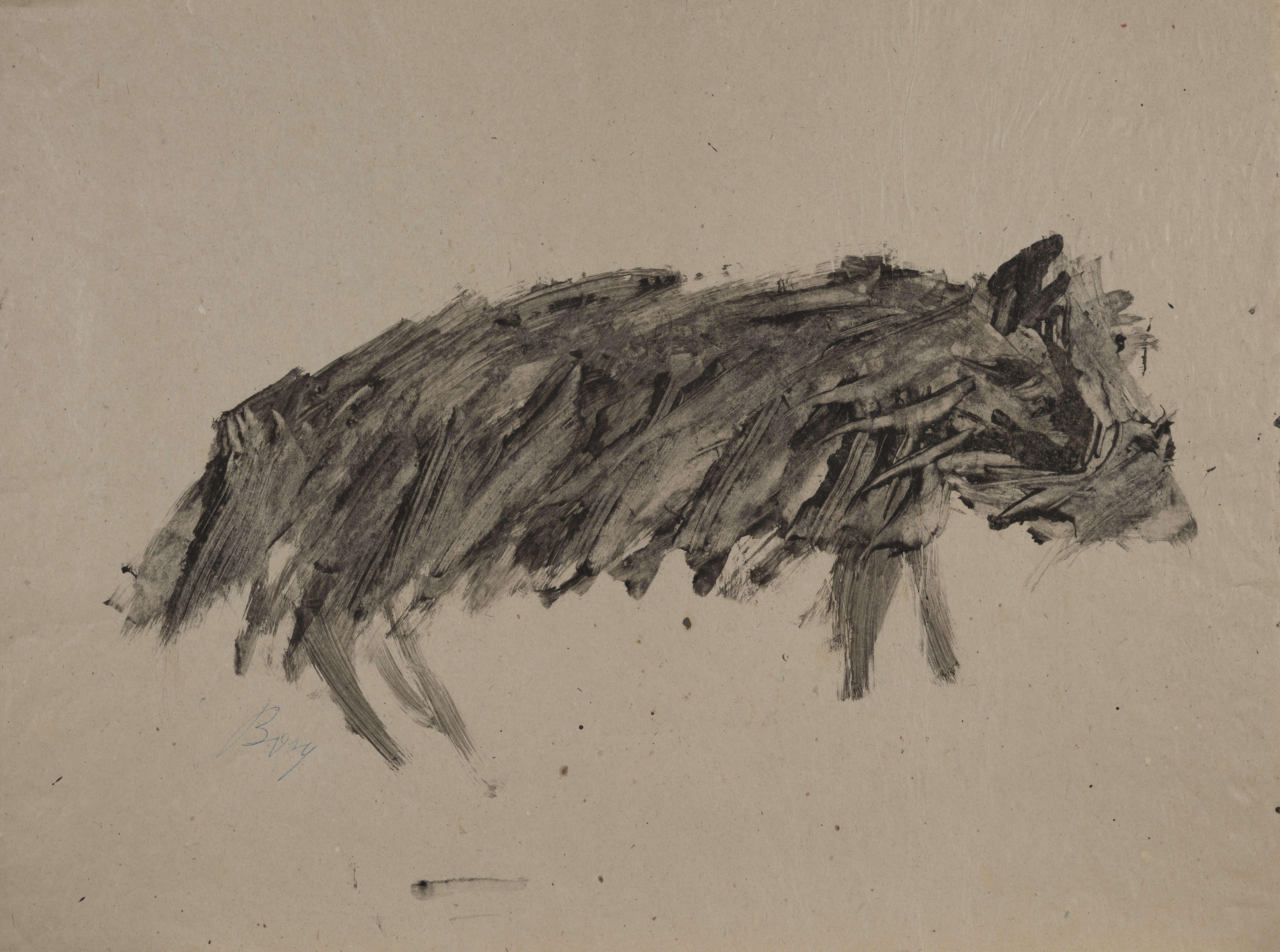 brązowy tusz, papier, 40 x 53,5 cm, sygn. długopisem l.d.: Bosy. Praca nieoprawiona.