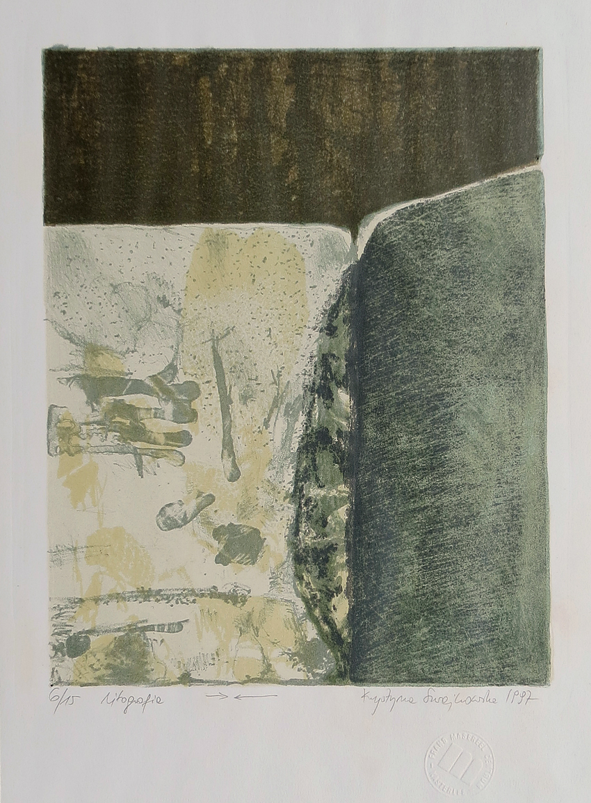 litografia barwna, edycja 6/15, 28,2 x 21,8 cm, sygn. oł. p.d.: Krystyna Szwajkowska 1997; oł. l.d.: 6/15 litografia.