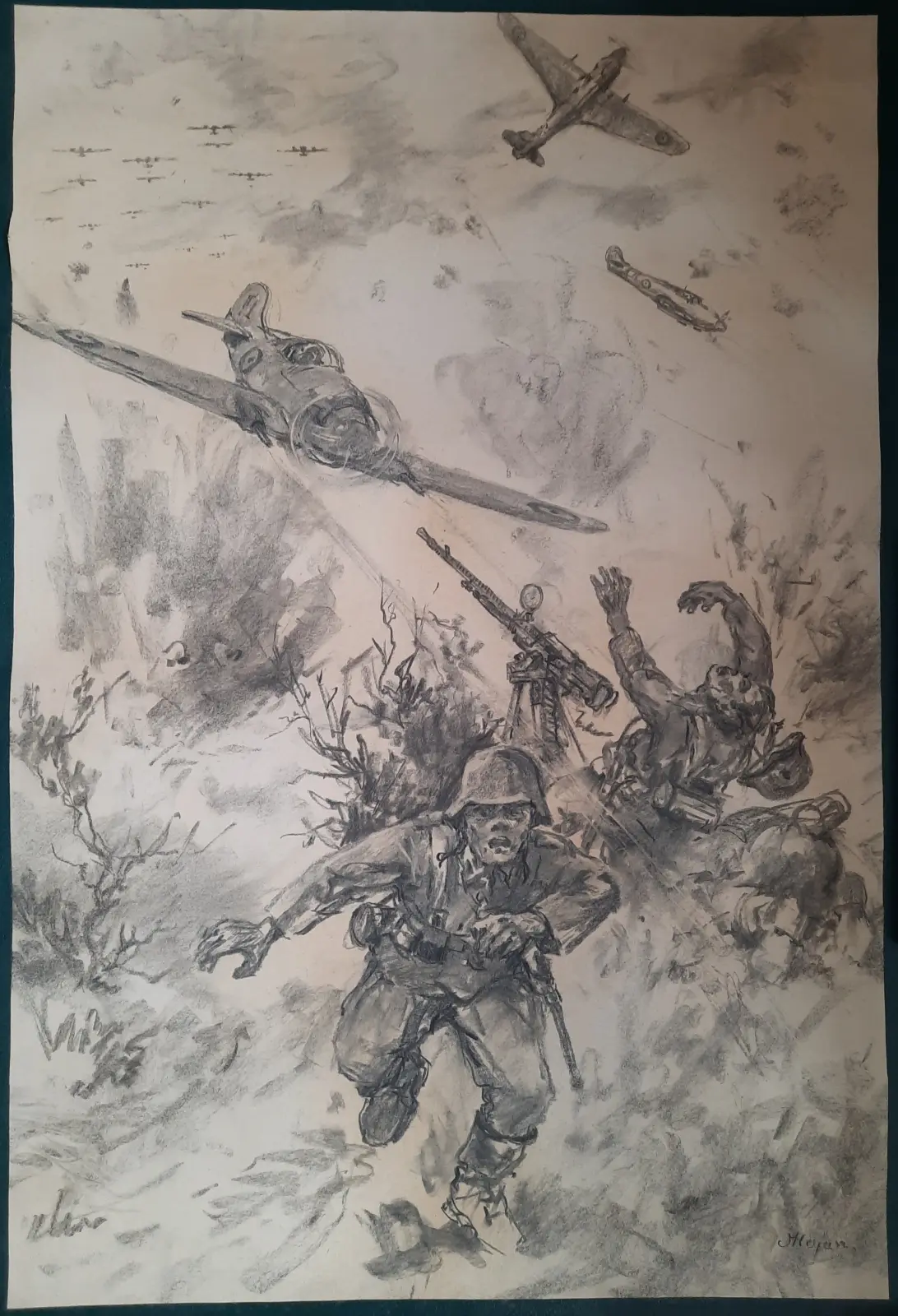 rysunek węglem na kartonie, wym. 94cm x 63 cm, sygn. p.d. Mesjasz; ok. 1957 roku