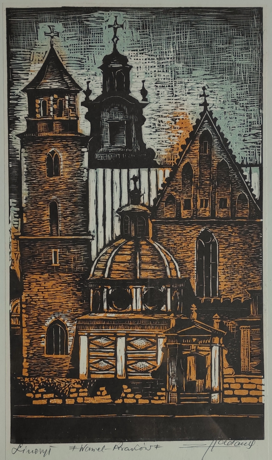 rama drewniana 50 x 33,5 cm, sygn.p.d.: ZAcedański, l.d.: Linoryt Wawel Kraków