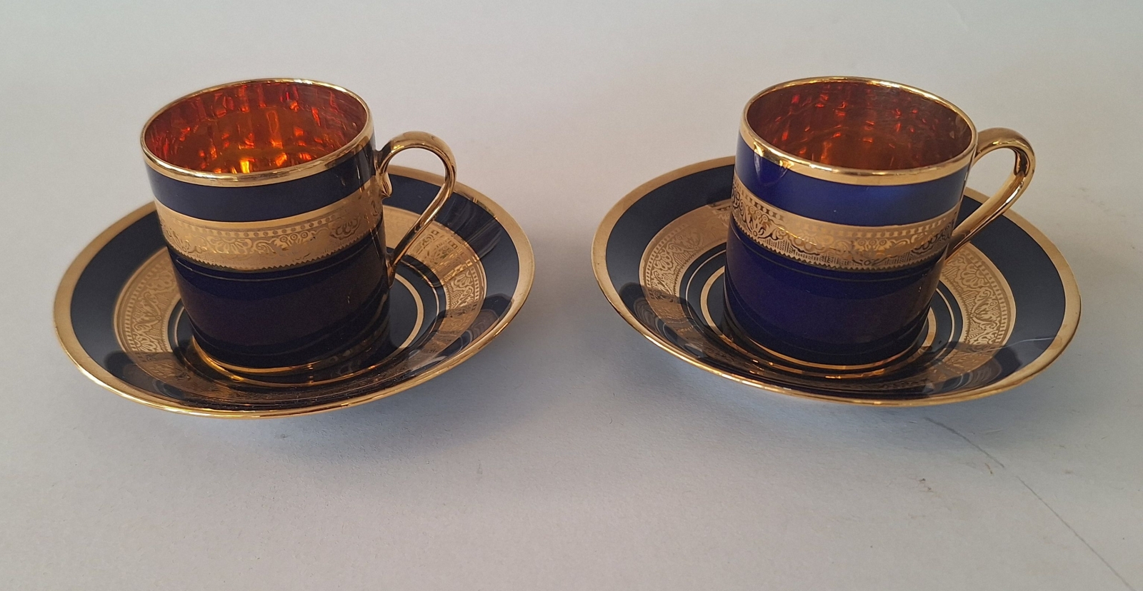 Porcelanowa filiżanka do espresso zdobiona kobaltem, złocona, produkcji Legle Porcelain d' art Limoges - renomowanego producenta porcelany Maison Legle z Limoges, tworzącego głownie porcelanę stołową i dekoracyjną od XIX wieku.