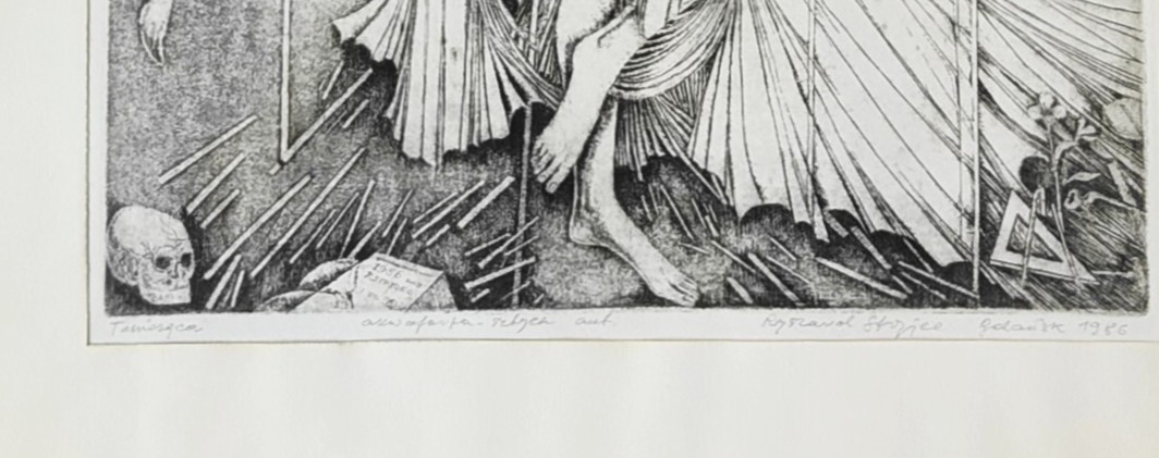 AKWAFORTA / PAPIER , WYM. 43 CM X 32 CM ( ZADRUK ) , WYM. 52 CM X 41,5 CM ( ARKUSZ ), 1986 ROK ,  SYGNOWANA, DATOWANA, OPISANA U  DOŁU PRACY .