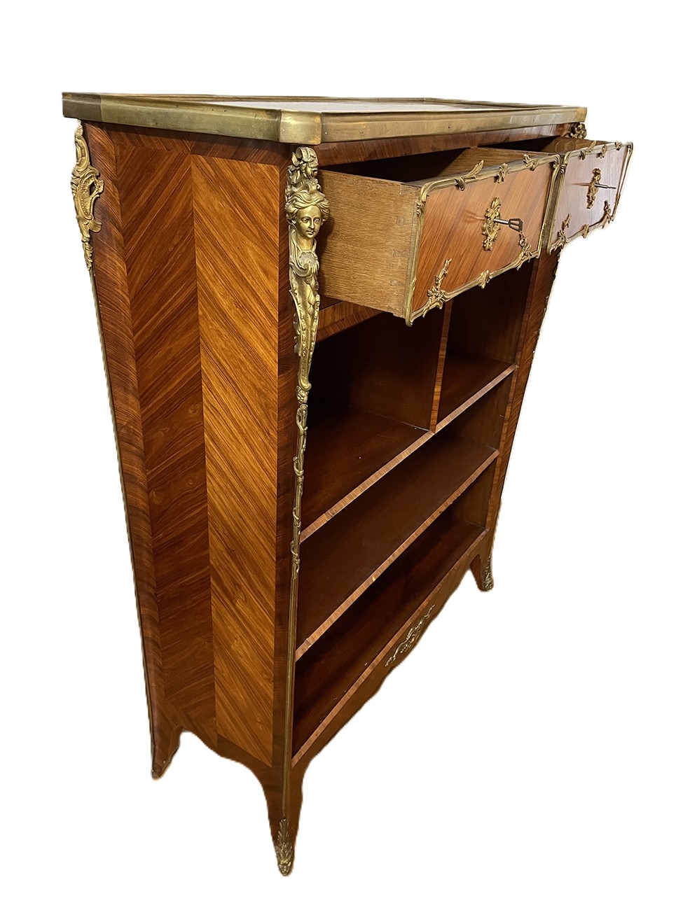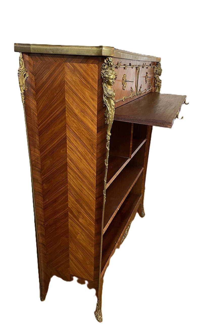 Kartoniera neorococo z okuciami brąz złocony,fornirowana, 2 szuflady i wysuwany blat.