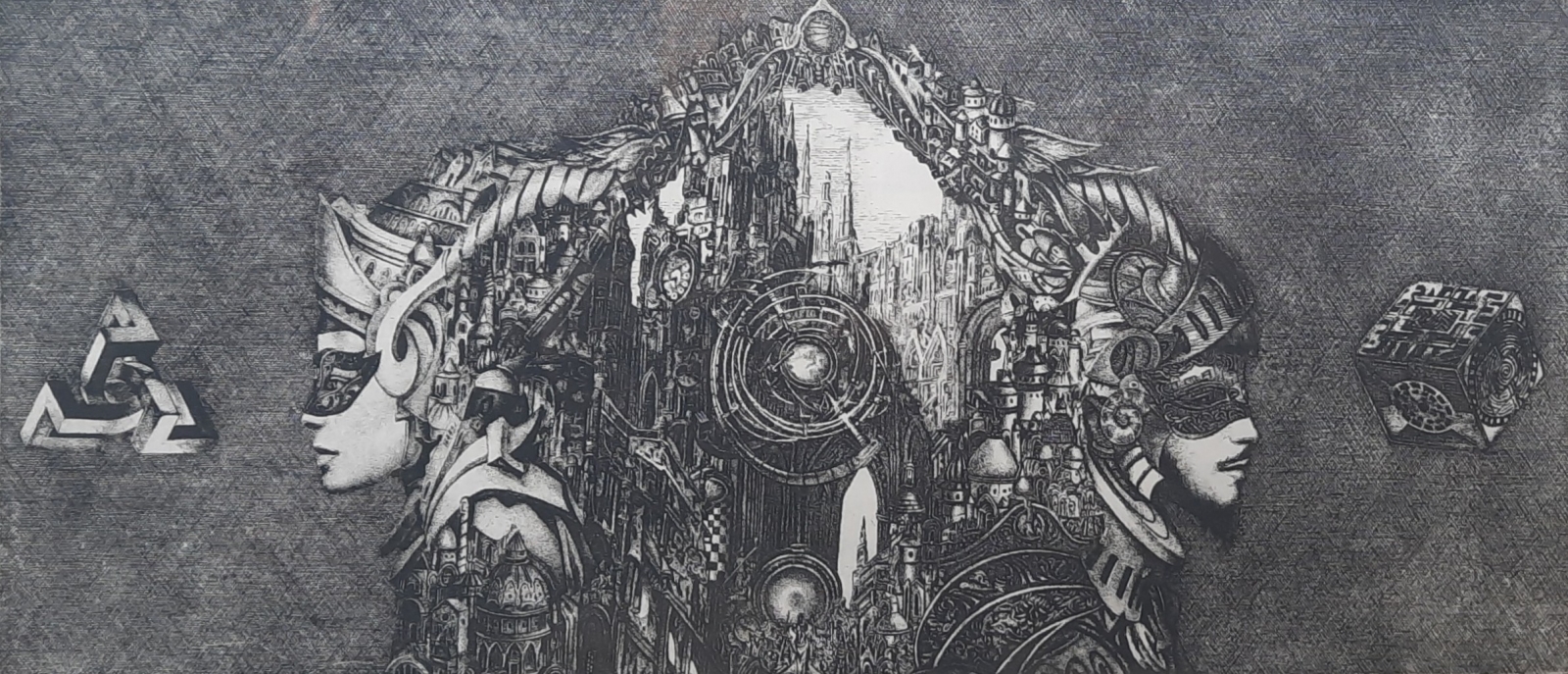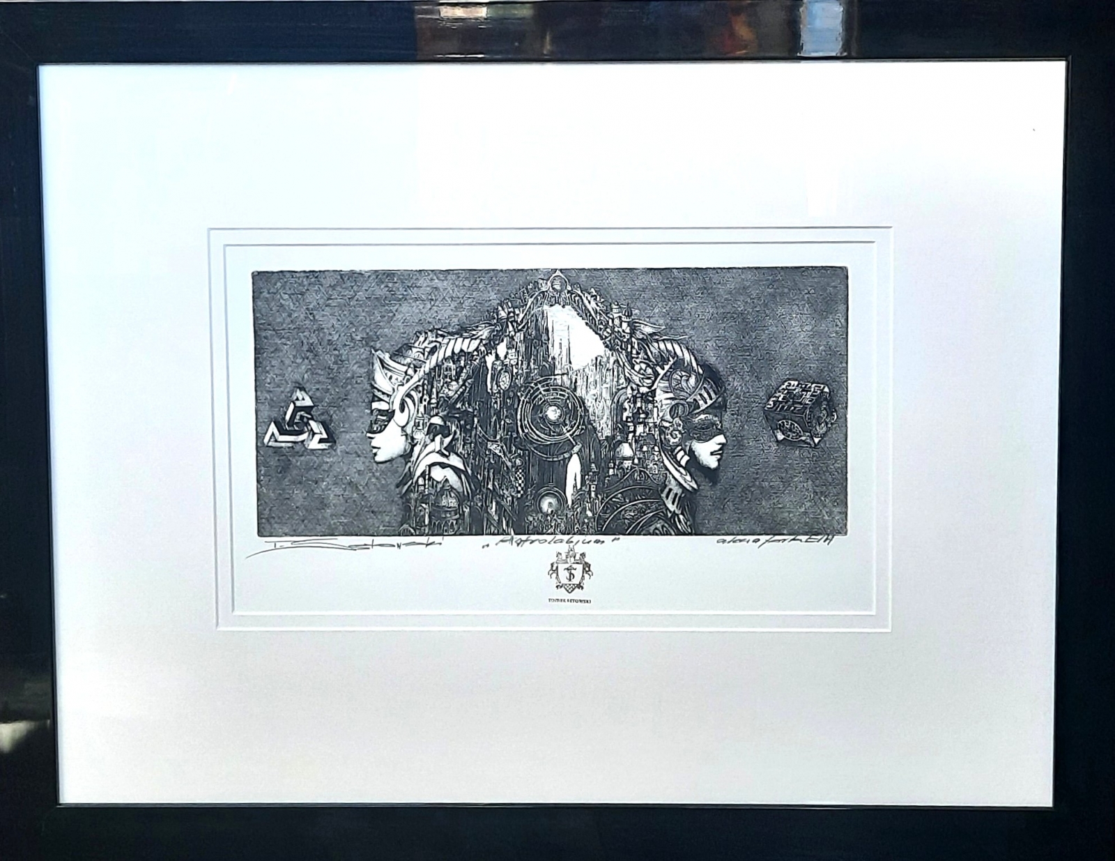akwaforta / papier, wym. 17 cm x 38 cm, sygn. l.d.: 'T. Sętowski", opisany śr.d.: 'Astrolabium' i p.d.: 'akwaforta E/A', dodatkowo śr.d.: pięczęć autorska; oprawa listwowa, passe-partout, szklenie