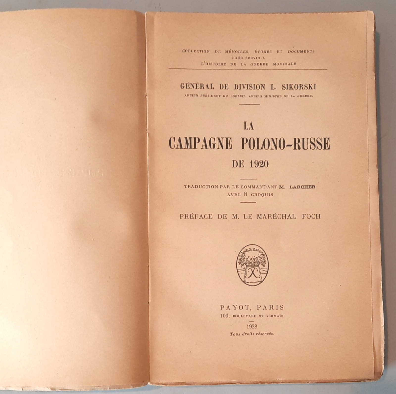 Książka "Wojna polsko-rosyjka 1920" z przedmową marszałka F. Focha, Wydawnictwo Payot, Paris 1928
