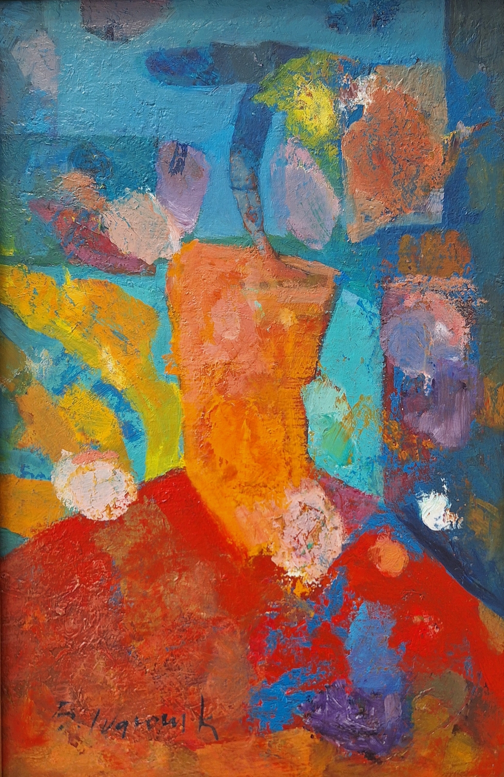 Akryl , płótno , wym. 29,7 x 20,7 cm. , sygn. l.d.