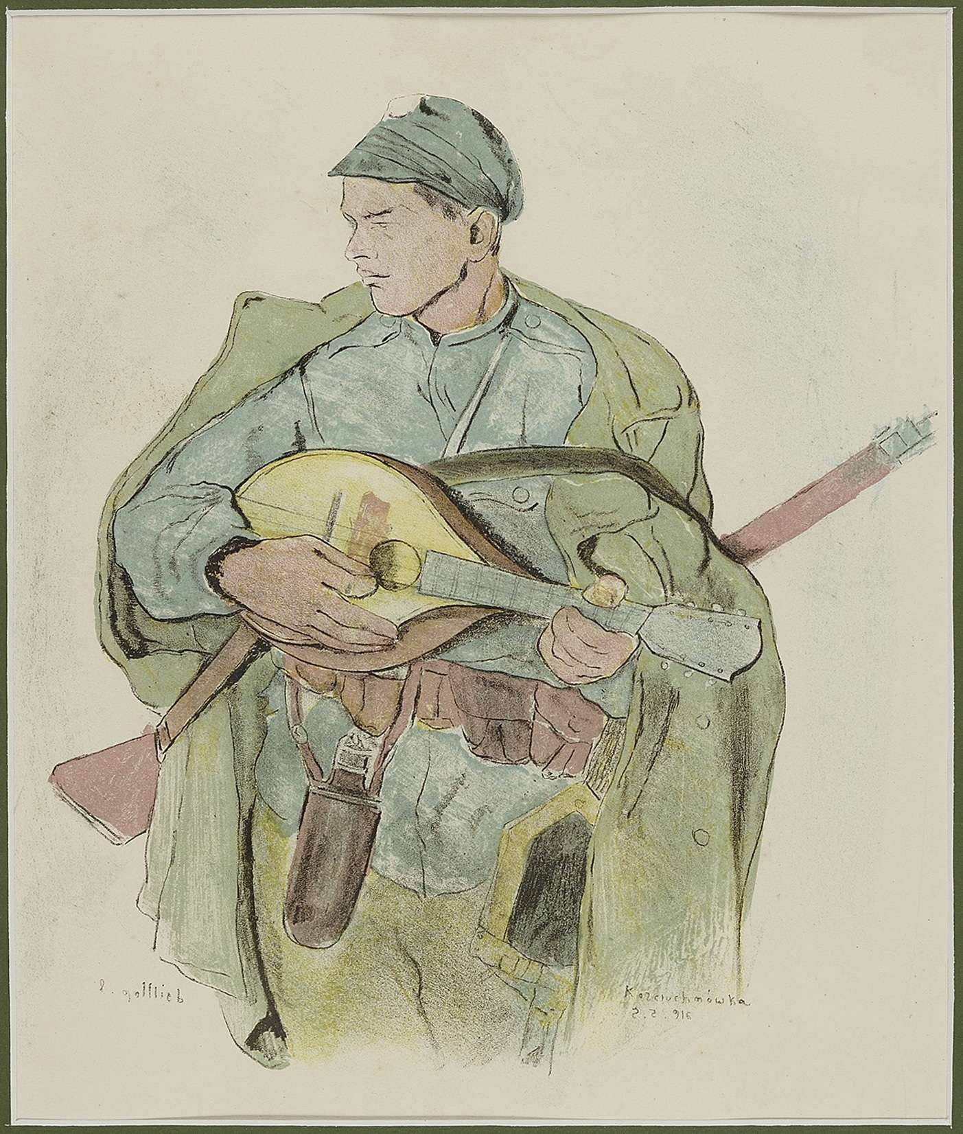 Litografia barwna, 33 x 27,5 cm w świetle p-p., sygn. na kamieniu: l.d.: L. Gottlieb, p.d.: Kostiuchnówka [odwrócone:] 5.5.916.