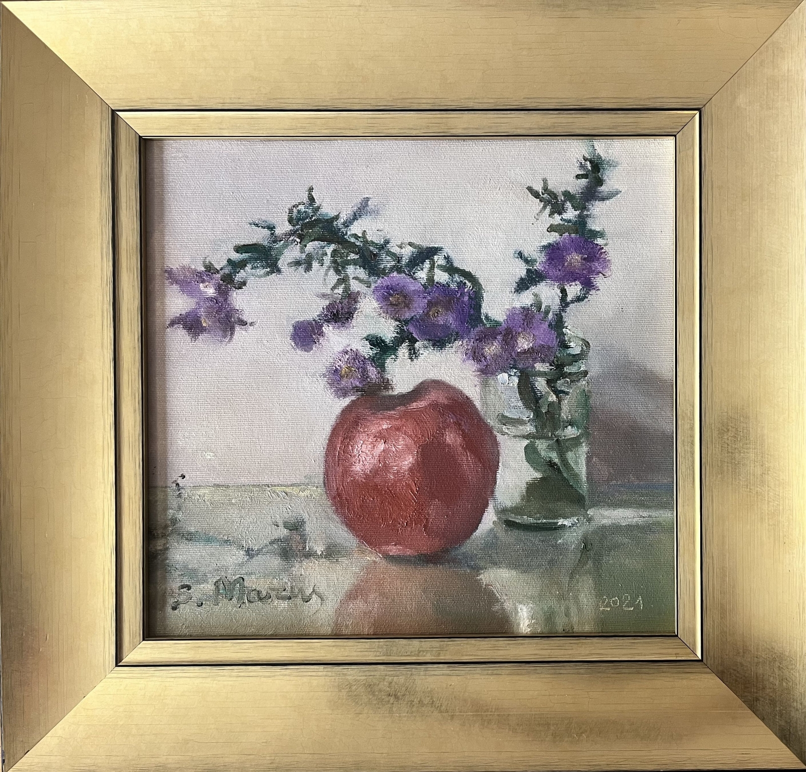 Olej, płótno na płycie, wym. 28 x 30 cm, sygn .l.d., dat. 2021