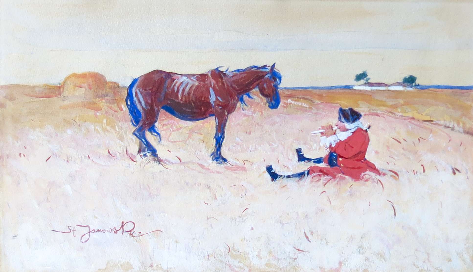 gwasz, akwarela, papier, 20,5 x 34 cm, sygn. l.d.: St. Janowski