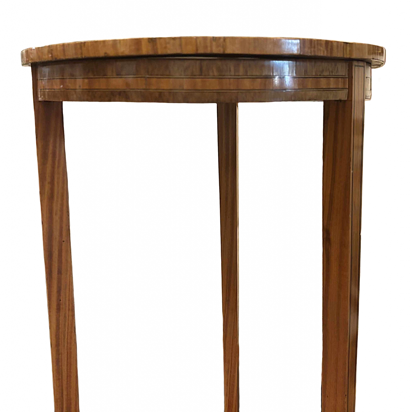 blat okrągły, wsparty na trzech nogach połączonych półką