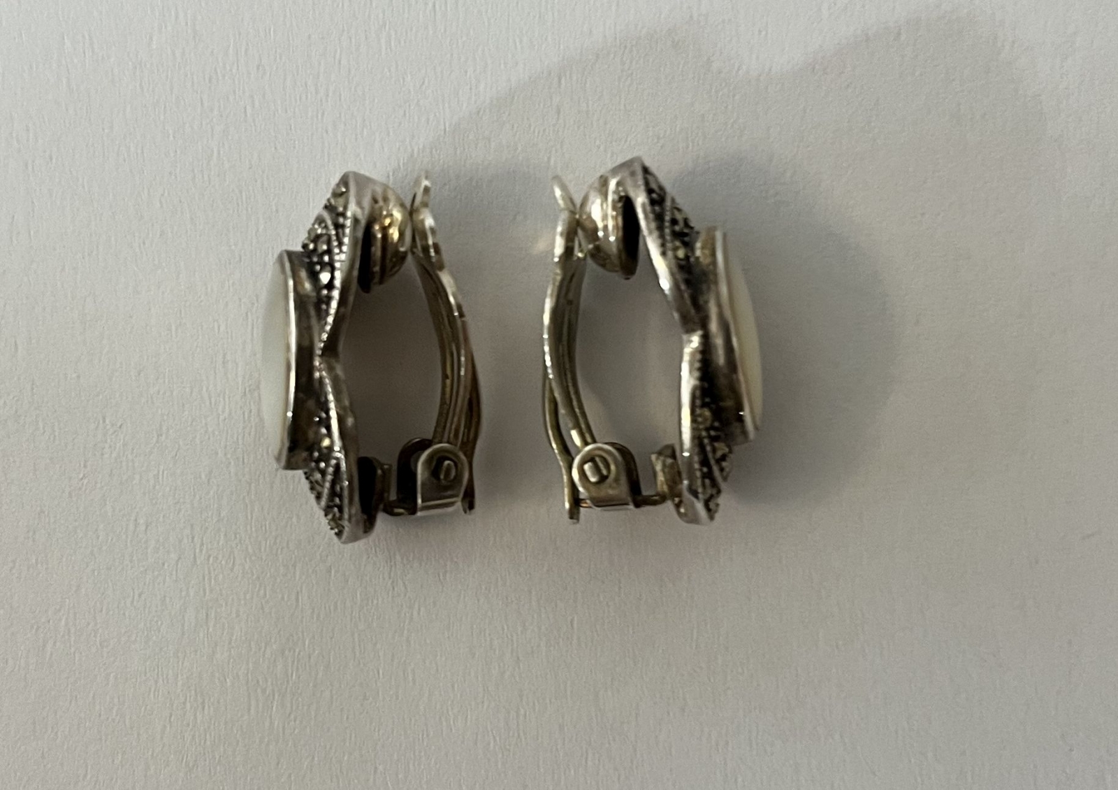 Klipsy srebro pr. 925 z masą perłową i markazytami, w. 9.8 g.
