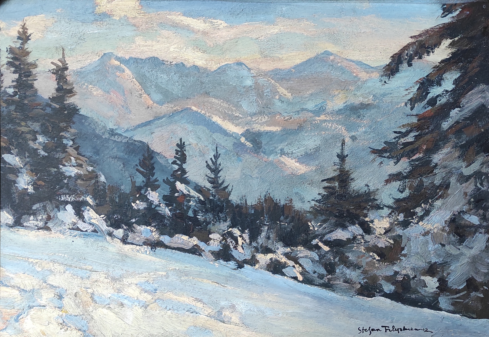 olej, tektura, 35 x 50 cm, sygn. p.d.: Stefan Filipkiewicz. Stan zachowania: malatura zabrudzona, tektura zawilgocona, ubytki tektury w prawym dolnym narożniku. Rama przemalowana.