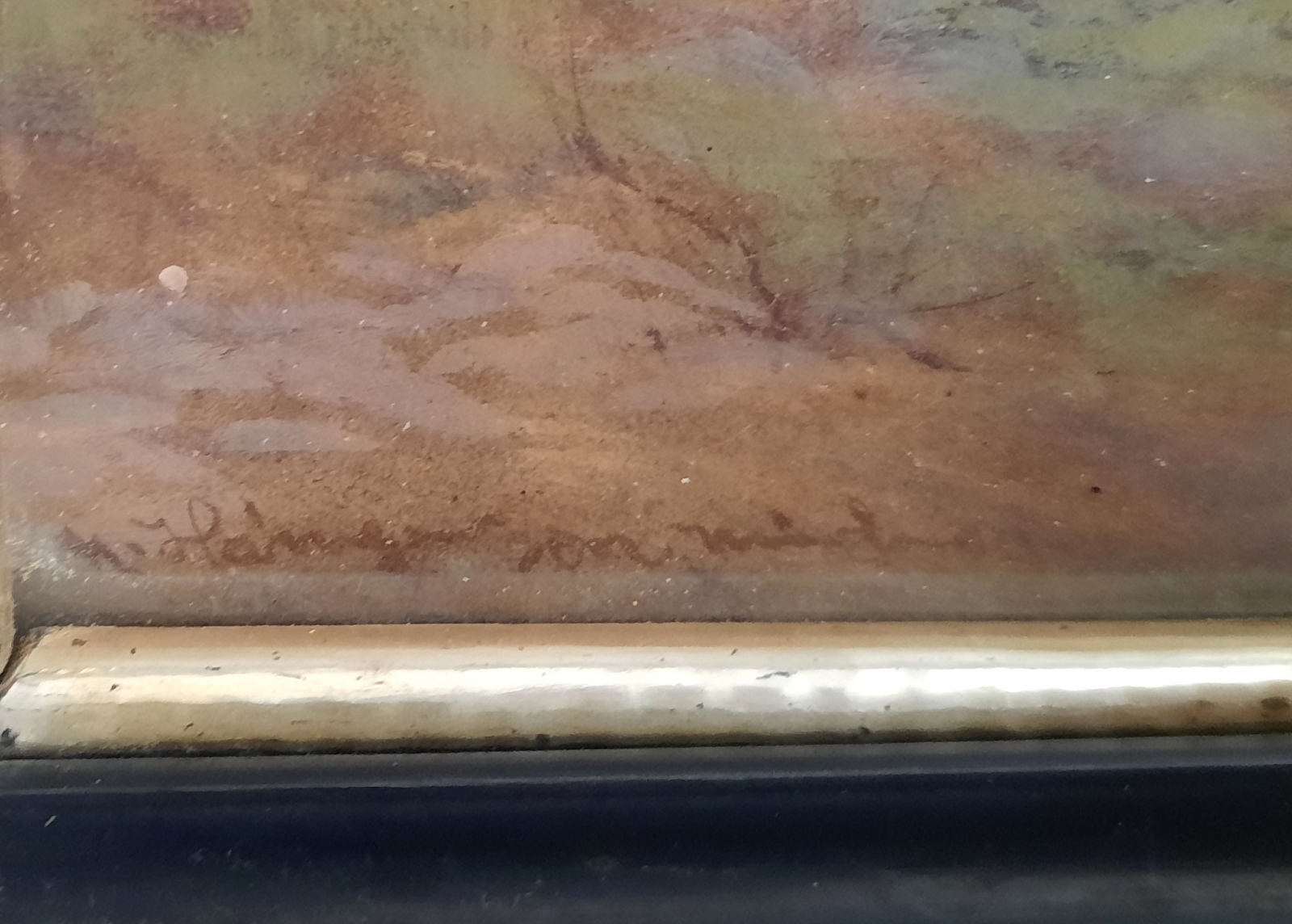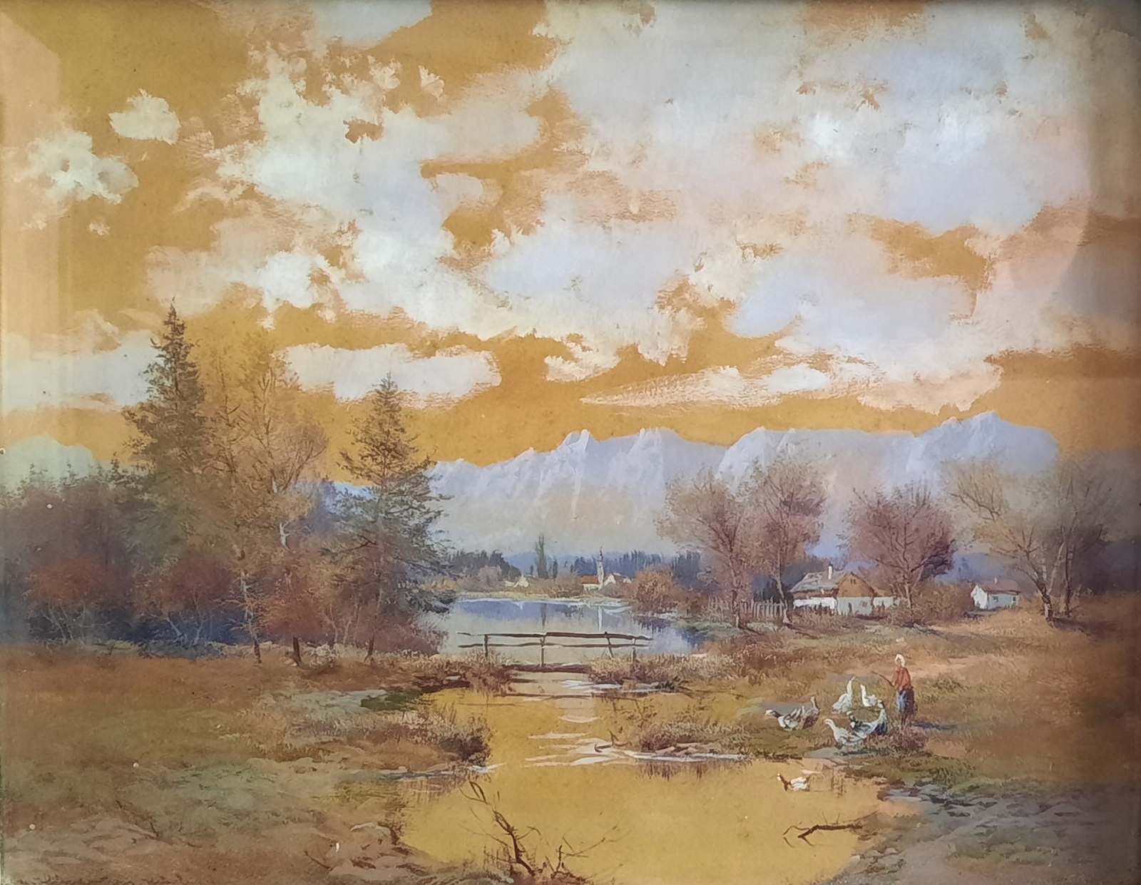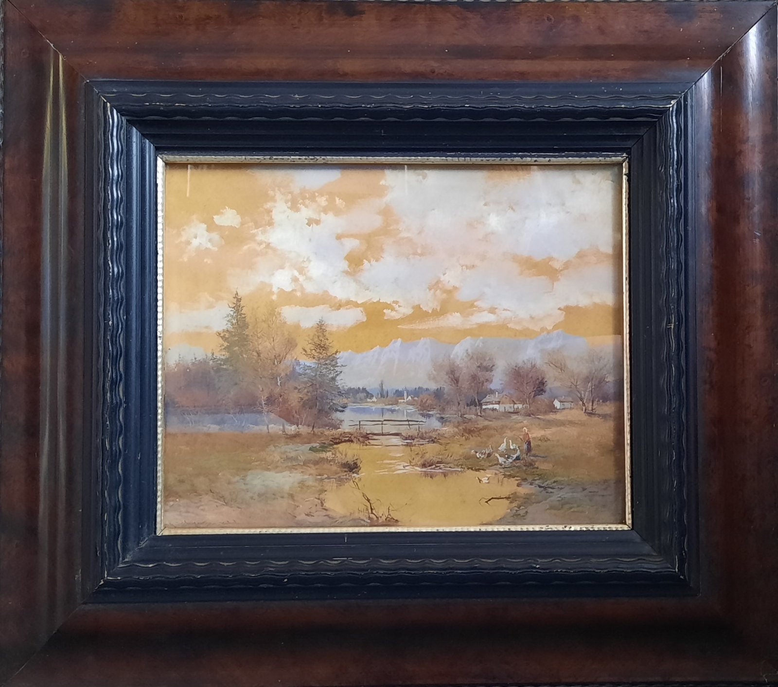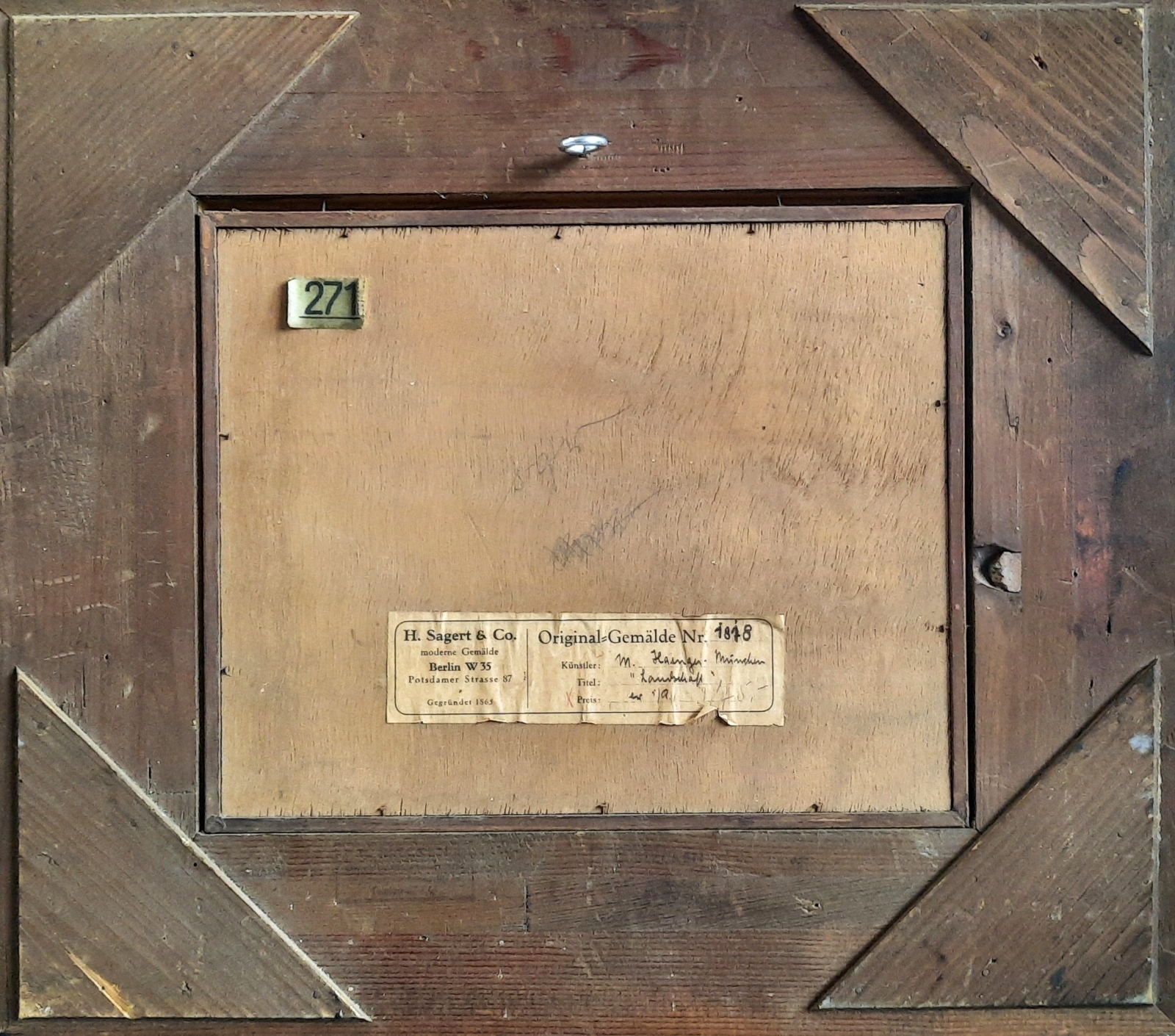 olej / karton naklejony na sklejkę, wym. 23,5 cm x 29 cm, sygn. l.d. l.d. M. Hänger sen München; oprawa drewniana, szklenie; na odwrocie nalepka berlińskiego sklepu z obrazami "H. Sagert & Co."; Niemcy I poł. XX w.