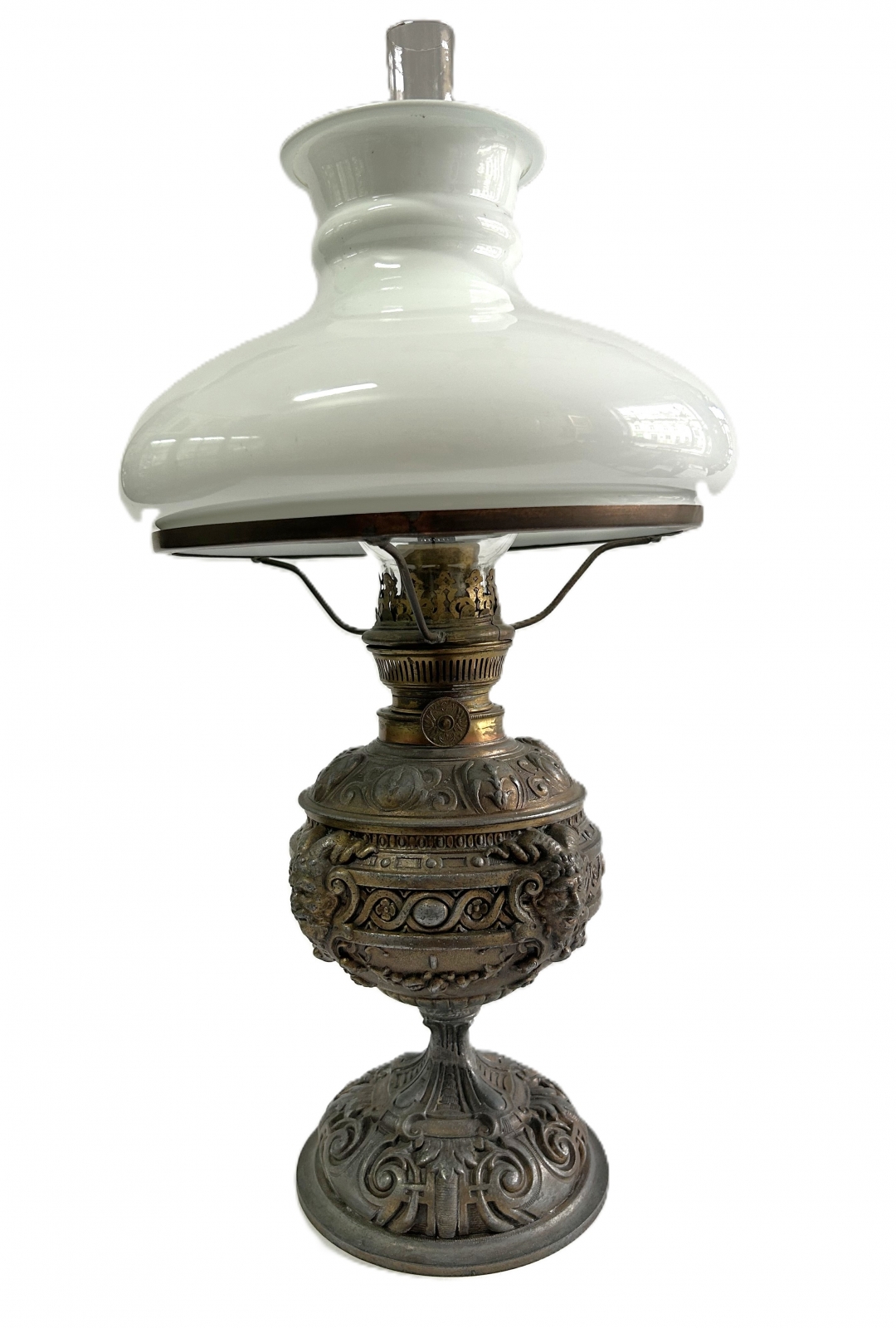 Lampa naftowa na cynostopwej podstawie. Początek XX w.