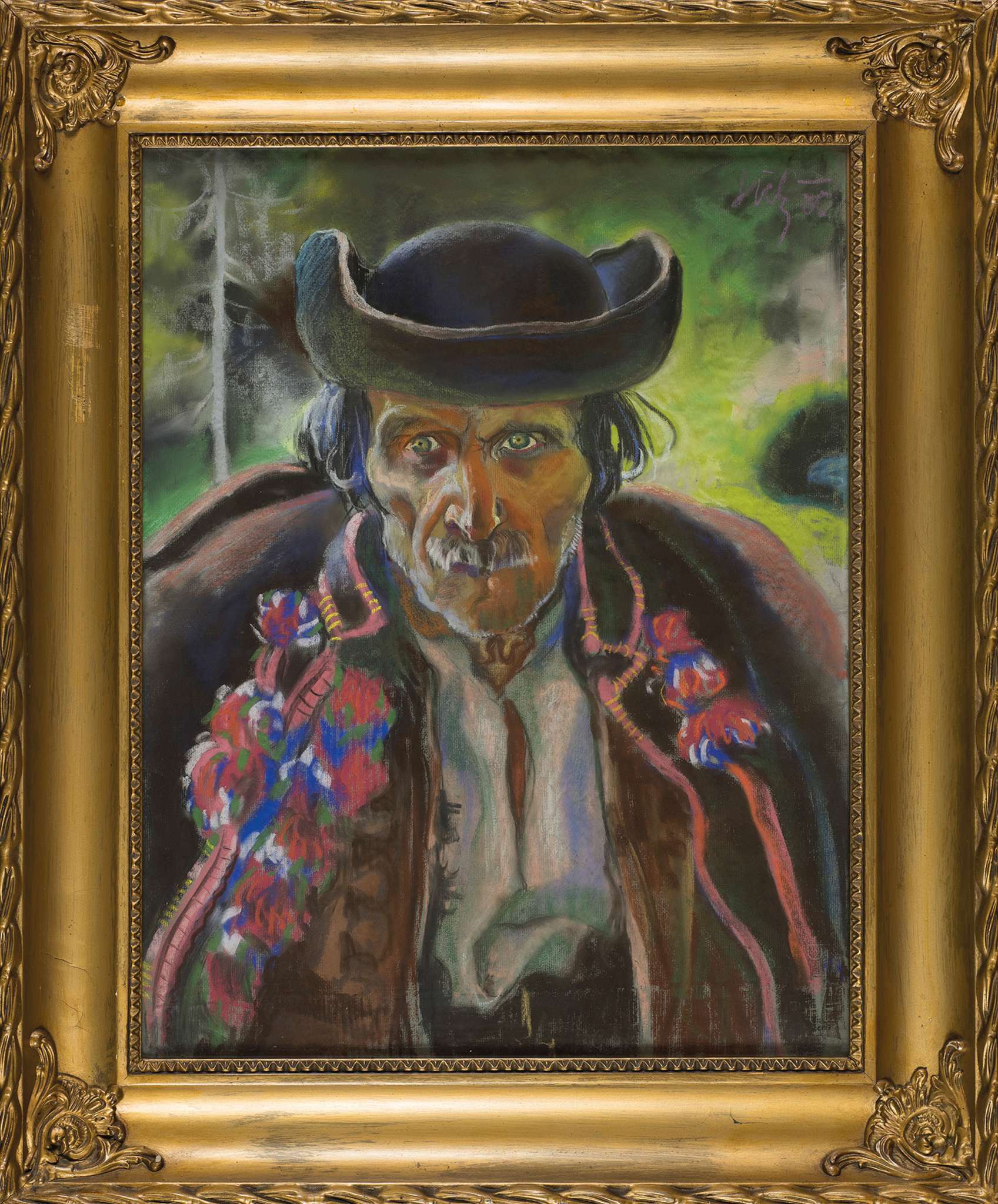 Sygn. p.g.: Sich, na odwrocie nalepka z numerem 2101, autorem i tytułem: Stary Fedko ze swoimi wnuczkami, wskazująca, że pierwotnie obraz był częścią tryptyku. Stan zachowania: sfalowanie papieru.