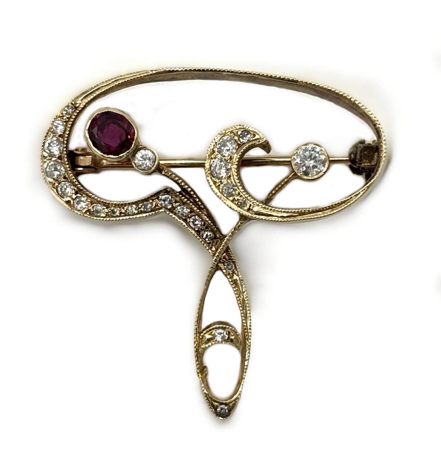 Pozycja: Broszka secesyjna z rubinem i diamentami