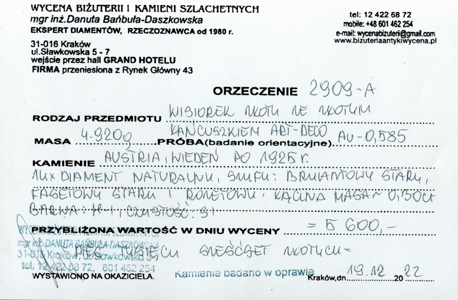 Cena: 5 600 zł