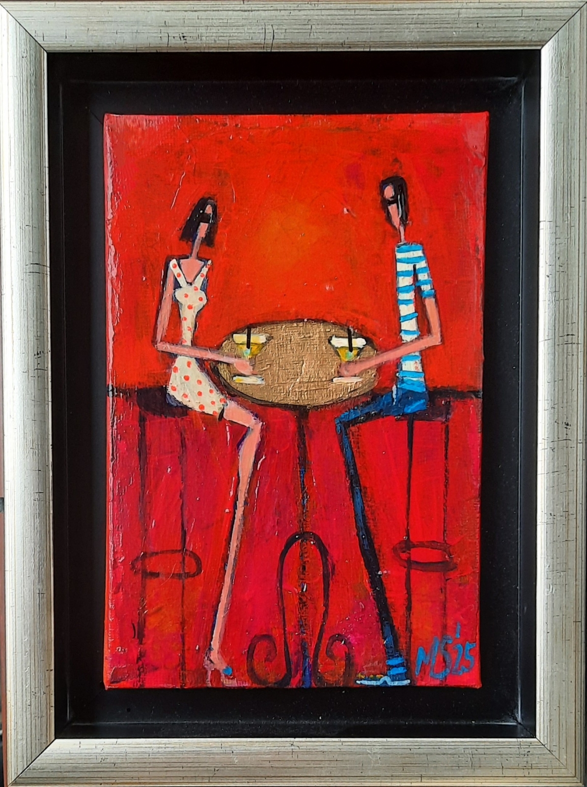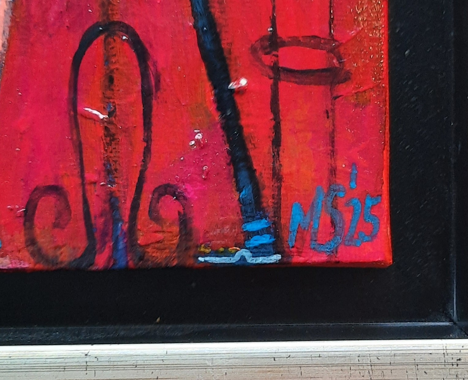 akryl / płótno; sygn. p.d. "MS'25", wymiary: 18 cm x 12 cm; obraz opisany autorsko na odwrocie; oprawa listwowa; 2025 r..