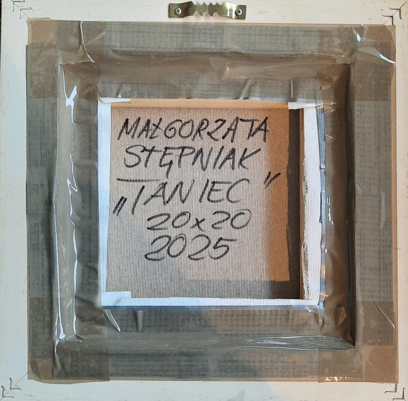 akryl / płótno; sygn. p.d. "MS'25"; wymiary: 20 x 20 cm; obraz opisany autorsko na odwrocie; oprawa listwowa, 2025 r