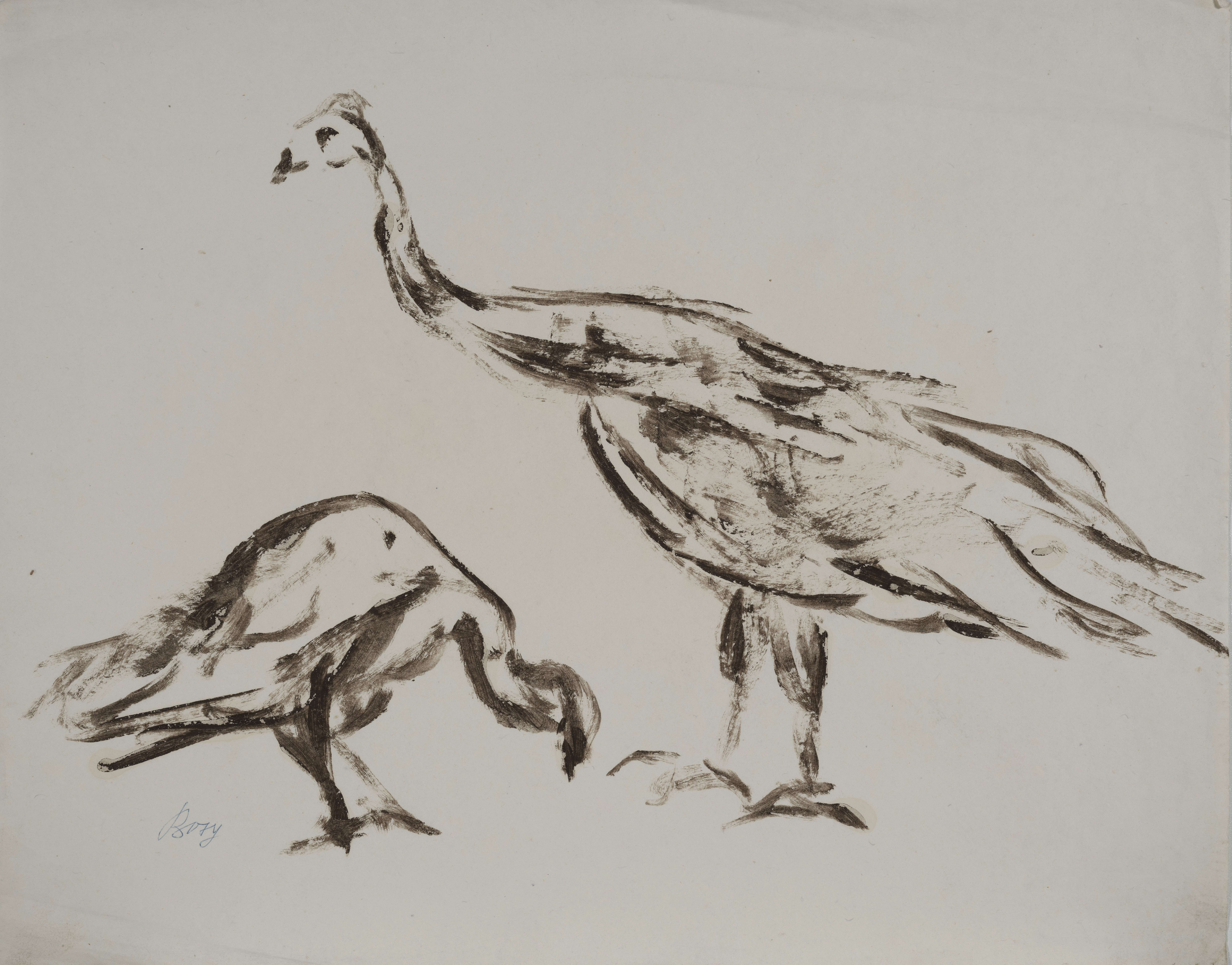 brązowy tusz, papier, 45 x 56 cm, sygn. długopisem l.d.: Bosy. Praca nieoprawiona.