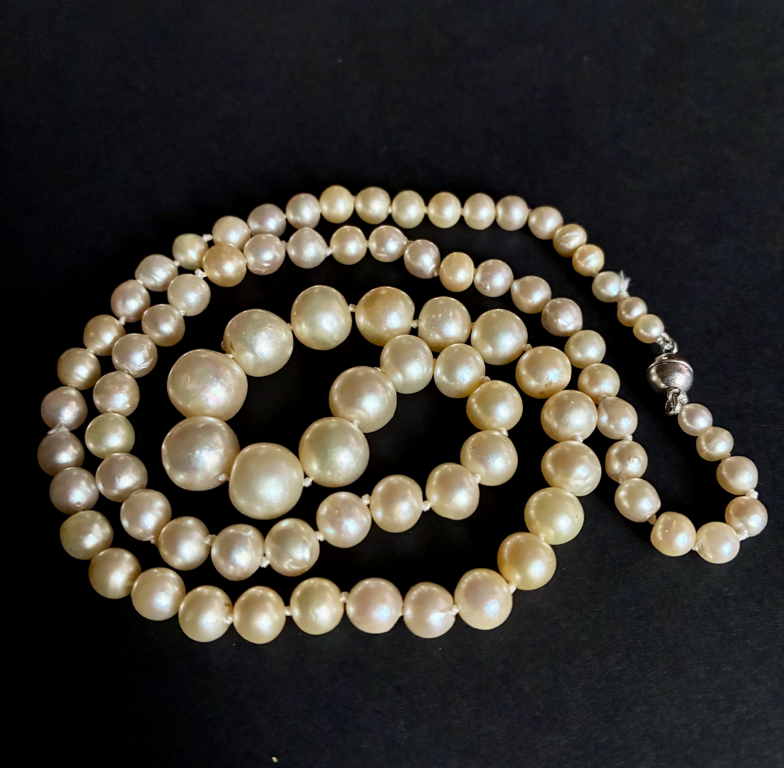 Naszyjnik z pereł słonowodnych, długość 58 cm,  zapięcie srebro, atest.