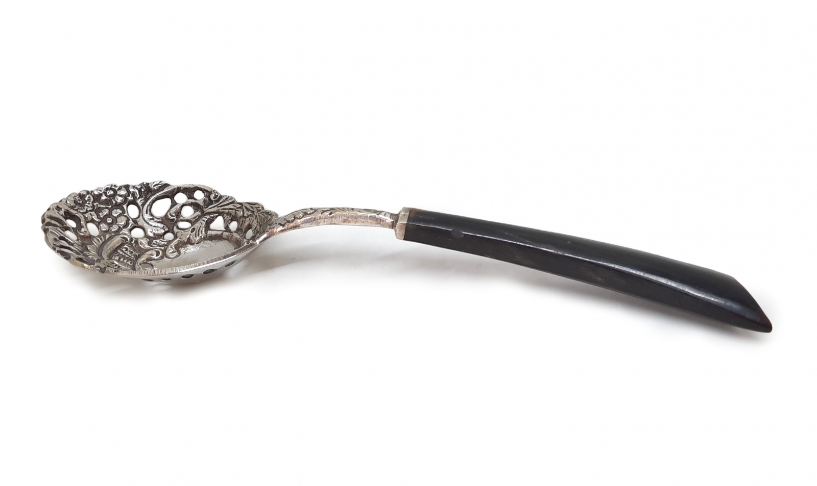 1. Łyżka cedzakowa - plater / bakelit, dł. ok. 27 cm; ok. 1900 r. - cena: