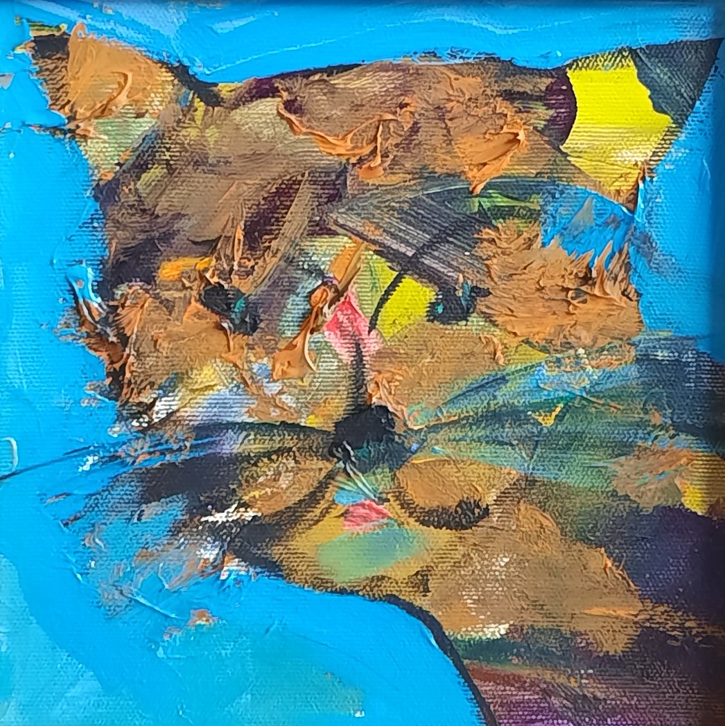 akryl / płótno, wym. 20 cm x 20 cm, opisany autorsko na odwrocie: FRĄCZEK '25; oprawa listwowa, materiałowe passe-partout