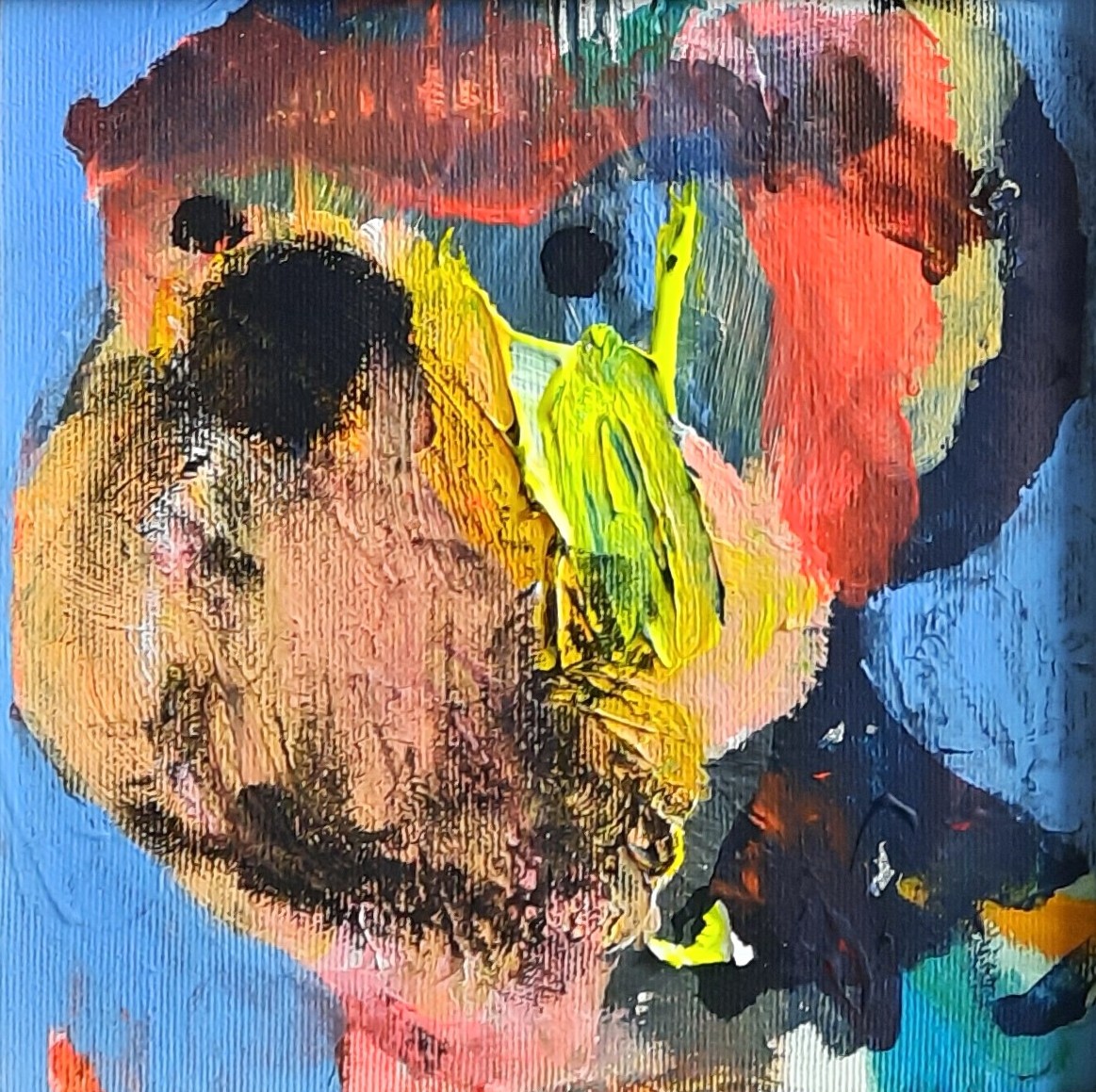 akryl / płótno, wym. 20 cm x 20 cm, opisany autorsko na odwrocie: FRĄCZEK '25; oprawa listwowa, materiałowe passe-partout