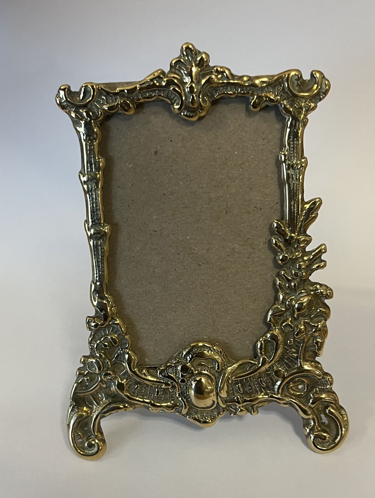 Ramka mosiężna na fotografię, wys. 12,5 cm, szer. 9,5 cm.