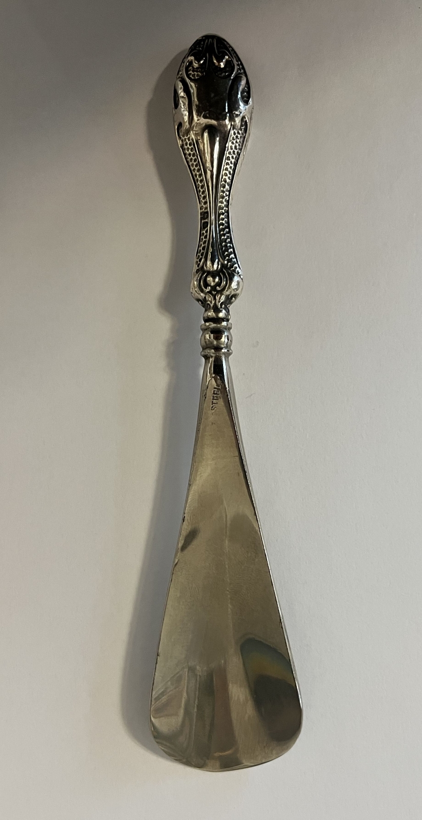 Łyżka do butów, rękojeść srebro próby 925, próby angielskie, łyżka metalowa.