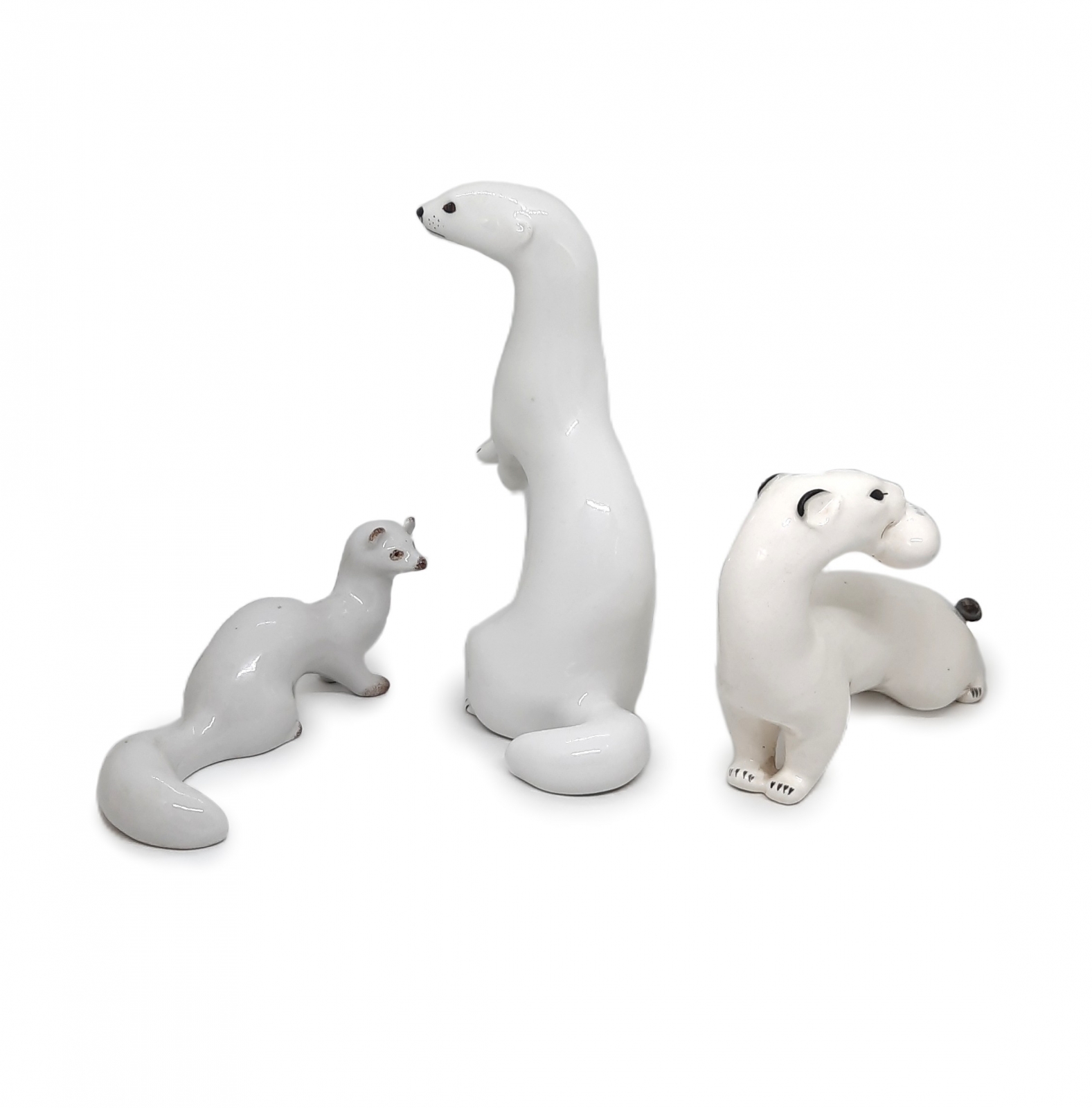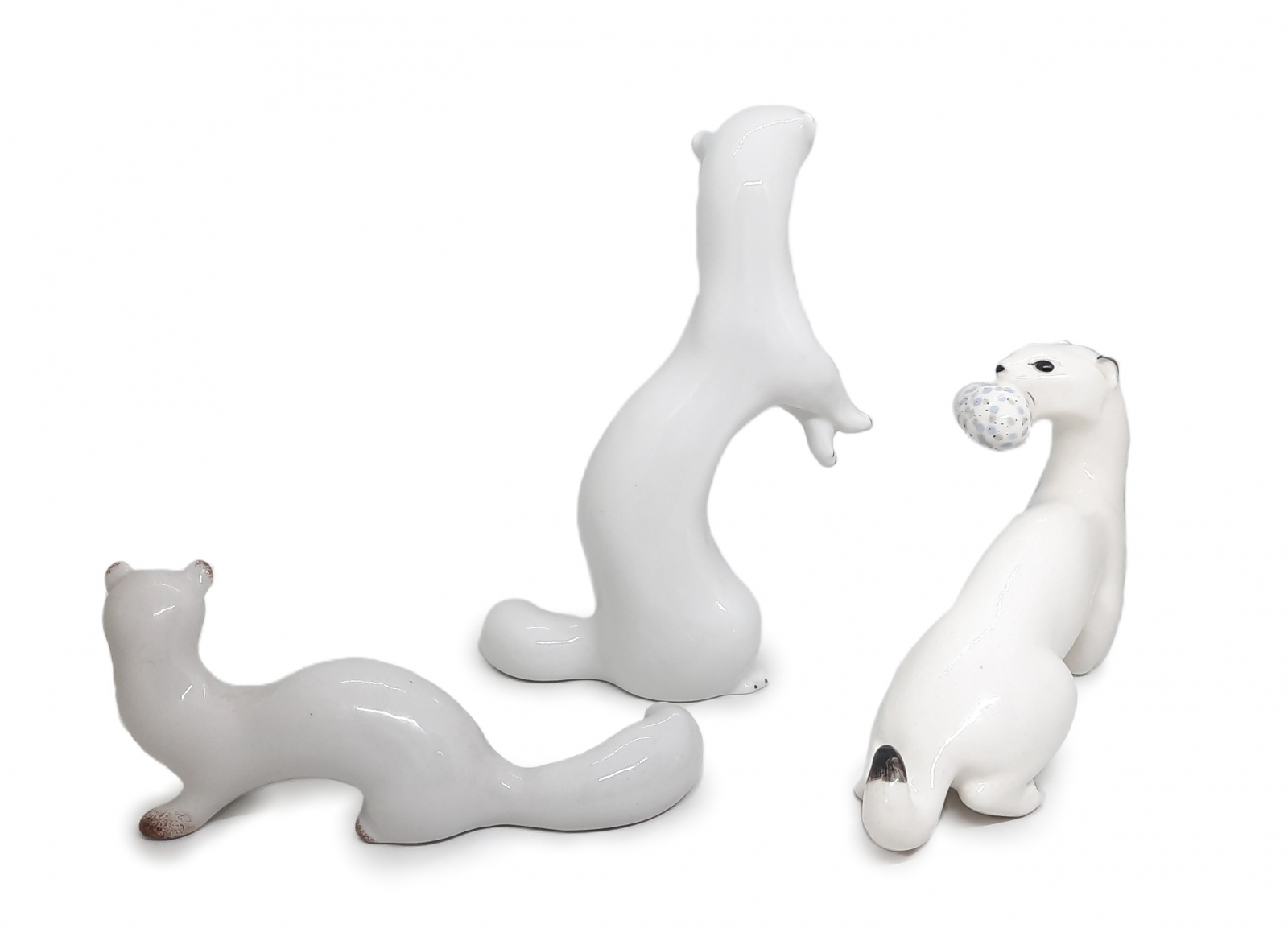 1. (13) Łasica - porcelana szkliwiona / malatury; sygn. Made in USSR; projekt: ZHK Połonne; dł. 15 cm; stan zachowania: bardzo dobry; ZSRR / ZHK Połonne II poł. XX w. - cena: 150 zł