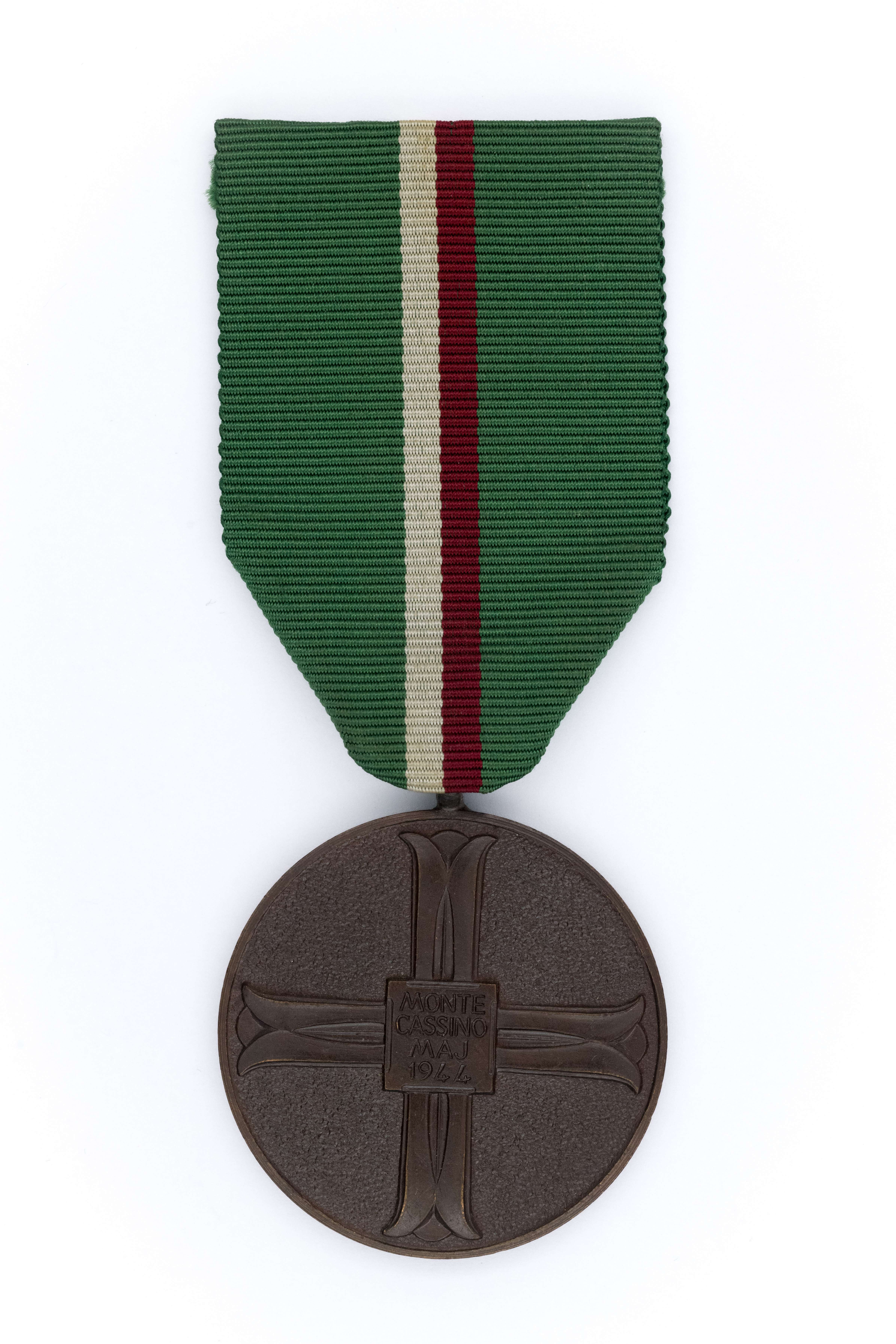 Medal Monte Cassino - 25 lecie bitwy 1969. śr. 39mm, brąz, stan bardzo dobry - zachowana oryginalna wstążka.