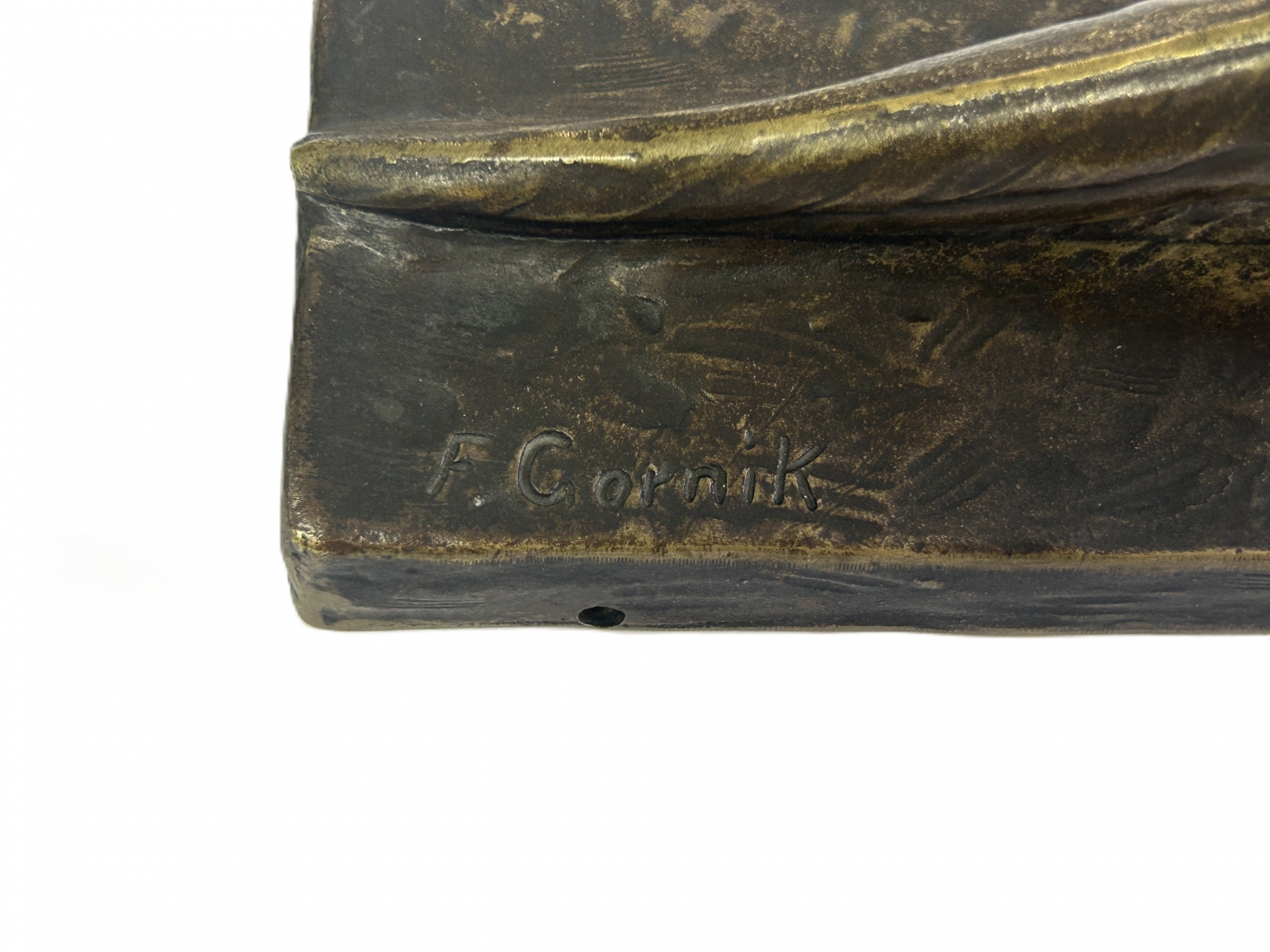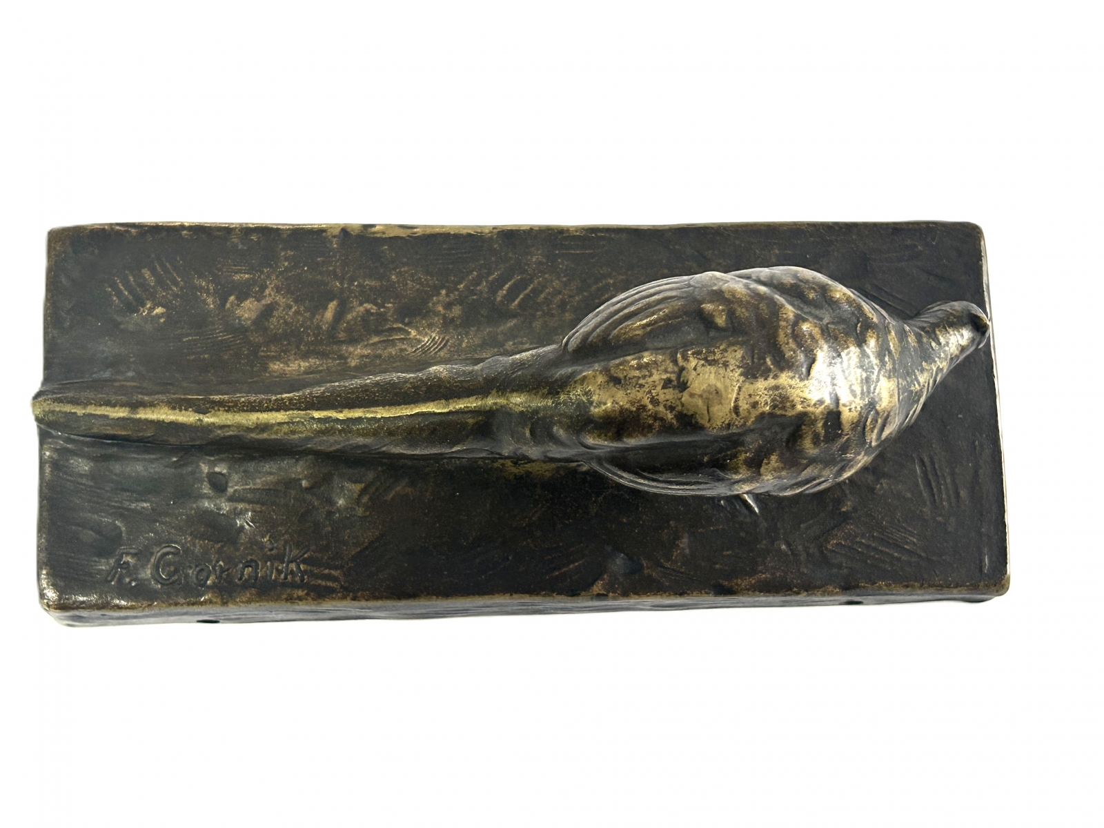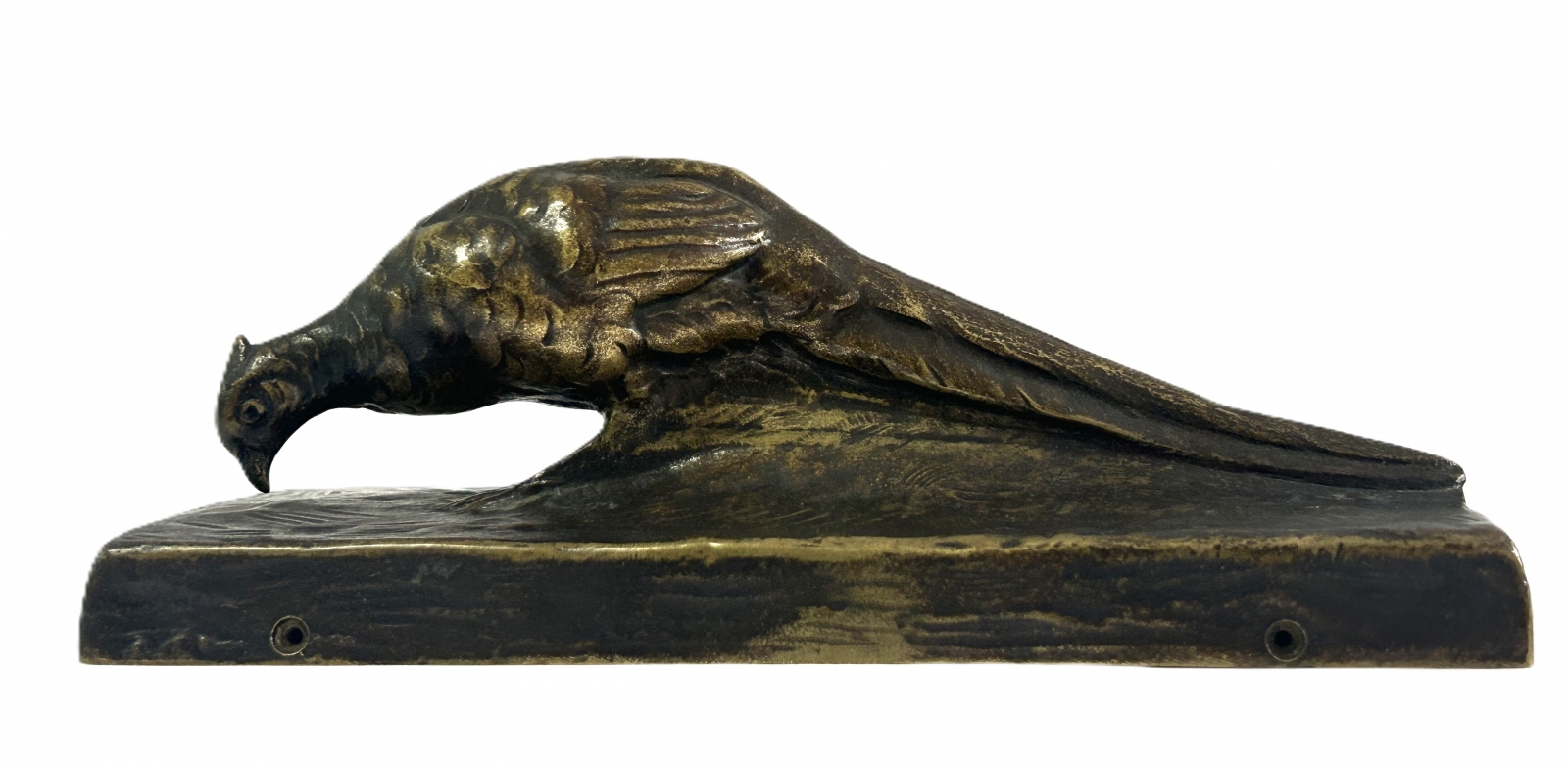Bażant- przycisk z brazu, sygnowany F. Gornik (1877-1943), Austria, Wiedeń.
