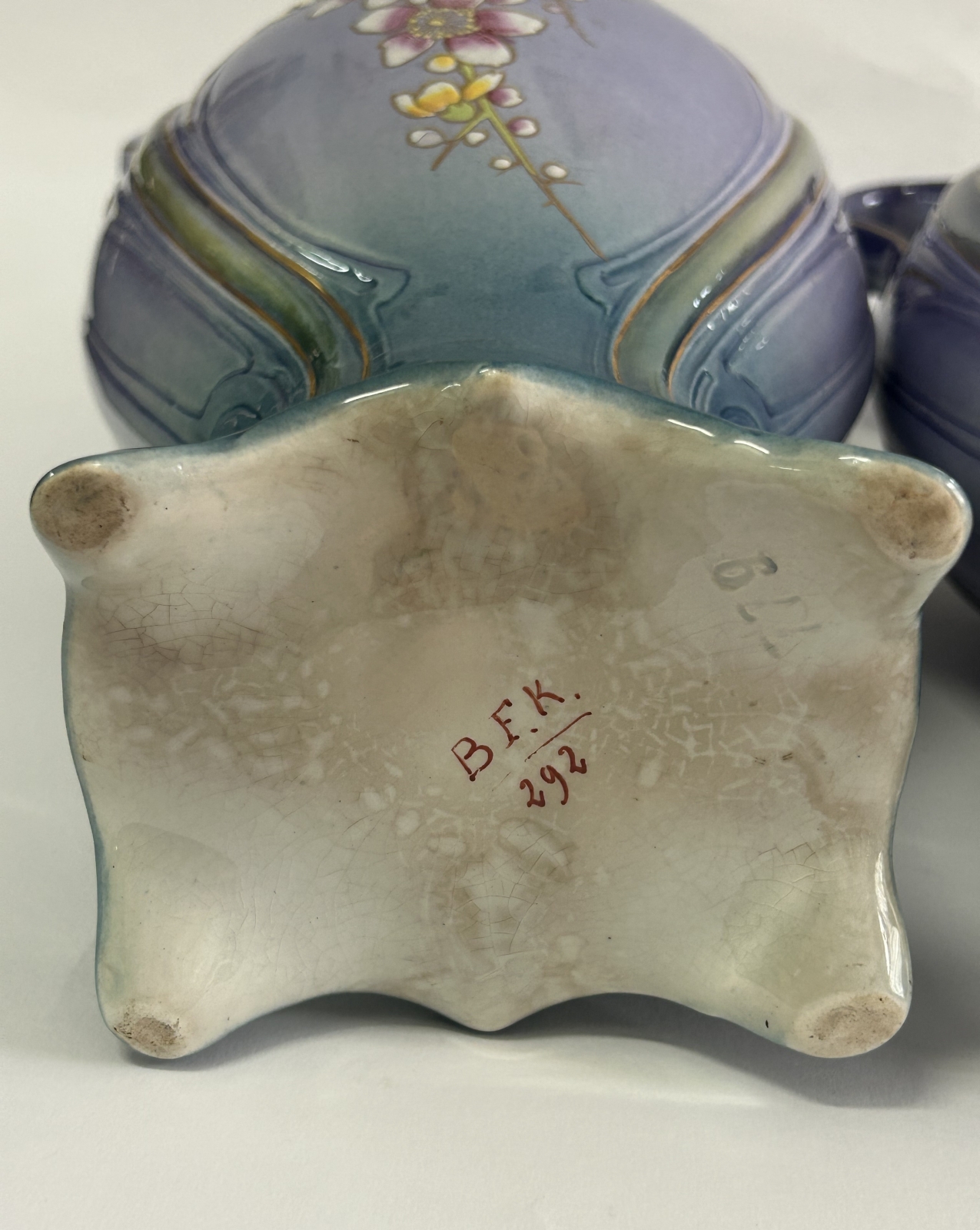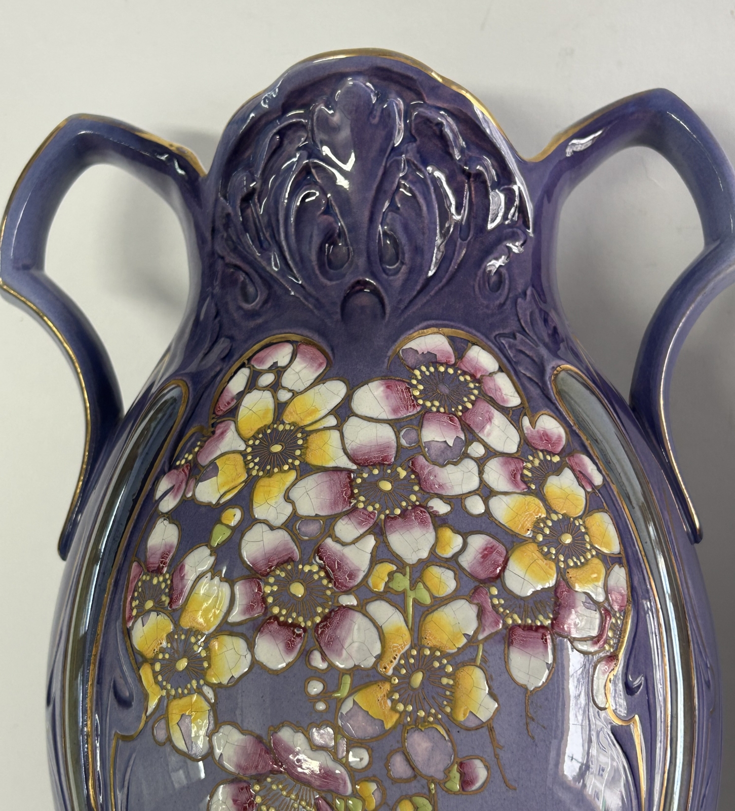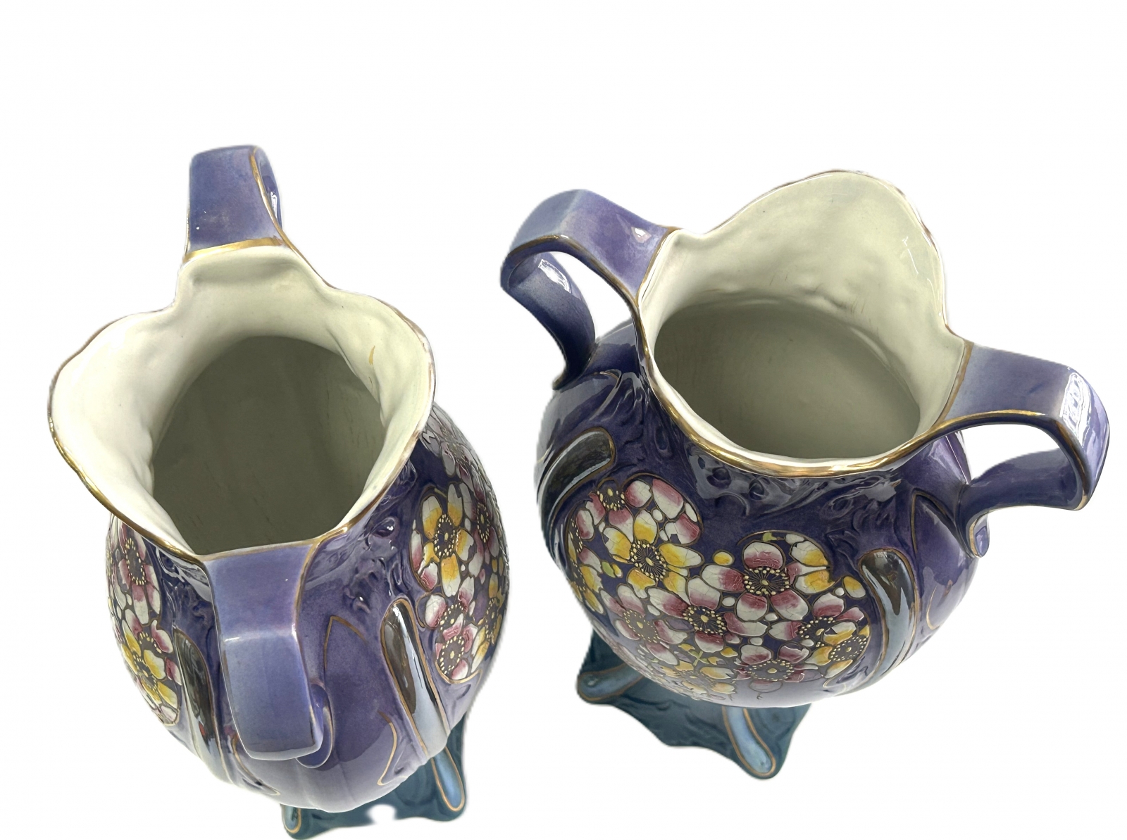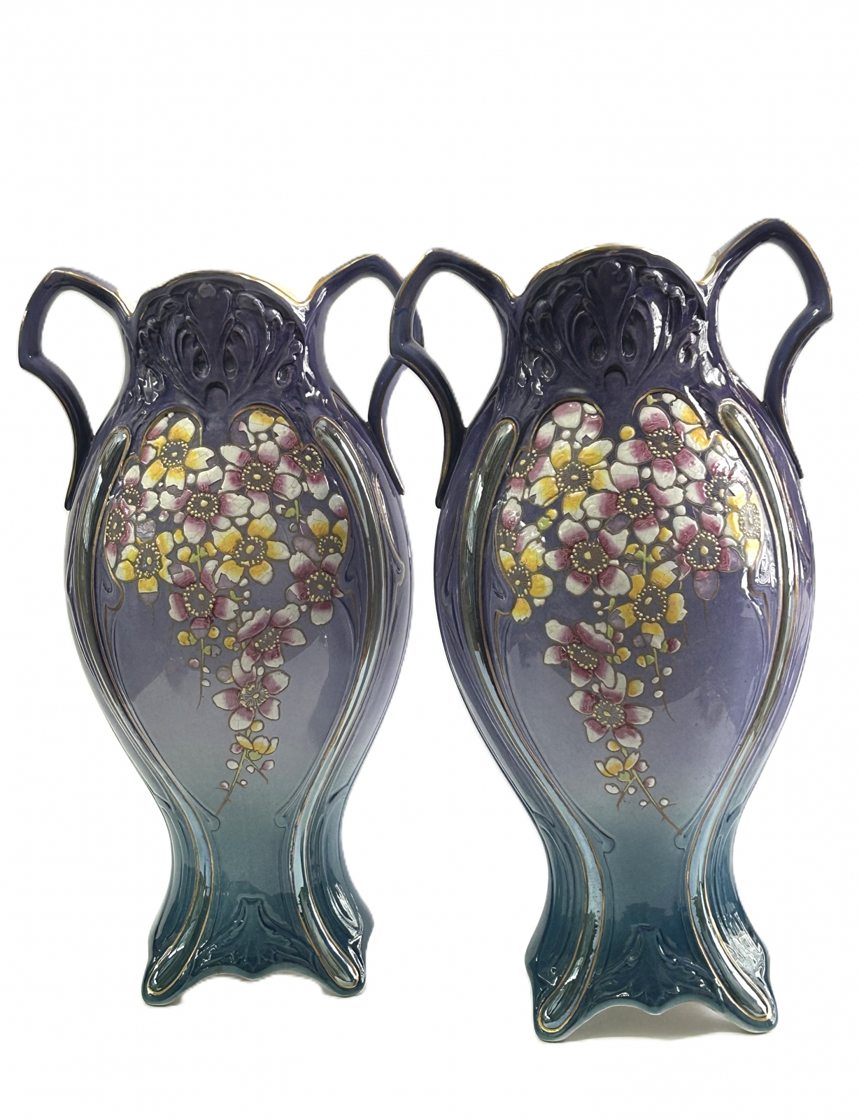 Wazony fajansowe, z emaliowanym wzorem kwiatowym, 2 sztuki.