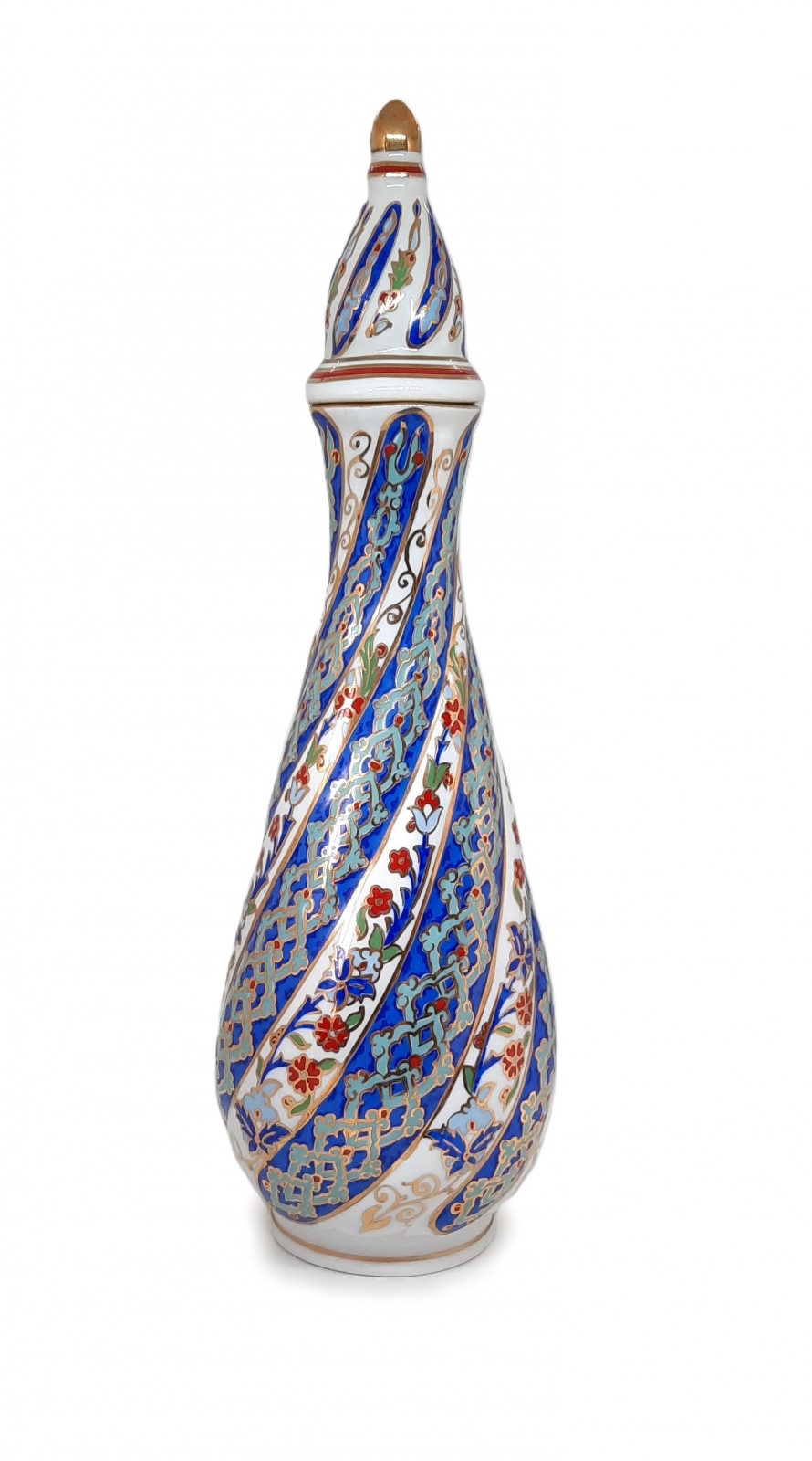 biała porcelana szkliwiona, malatury i złocenia naszkliwne; sygnatura drukowana: 'Kütahya Porselen' oraz odręczny napis: 'Special Hand Made'; wys. 32 cm; Turcja