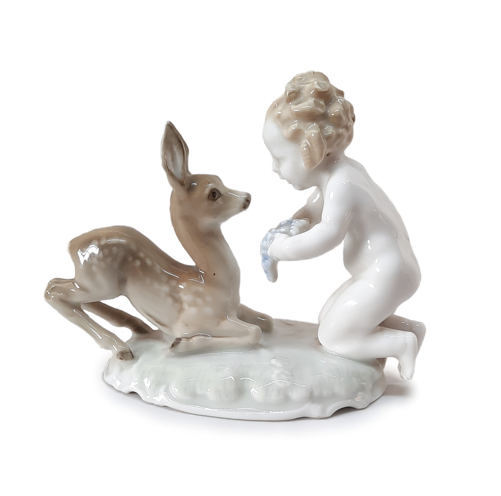 Figurka porcelanowa Putto z sarenką proj. Karl Tutter, Niemcy, Hutschenreuther Kunstabteilung lata 50./60. XX w.