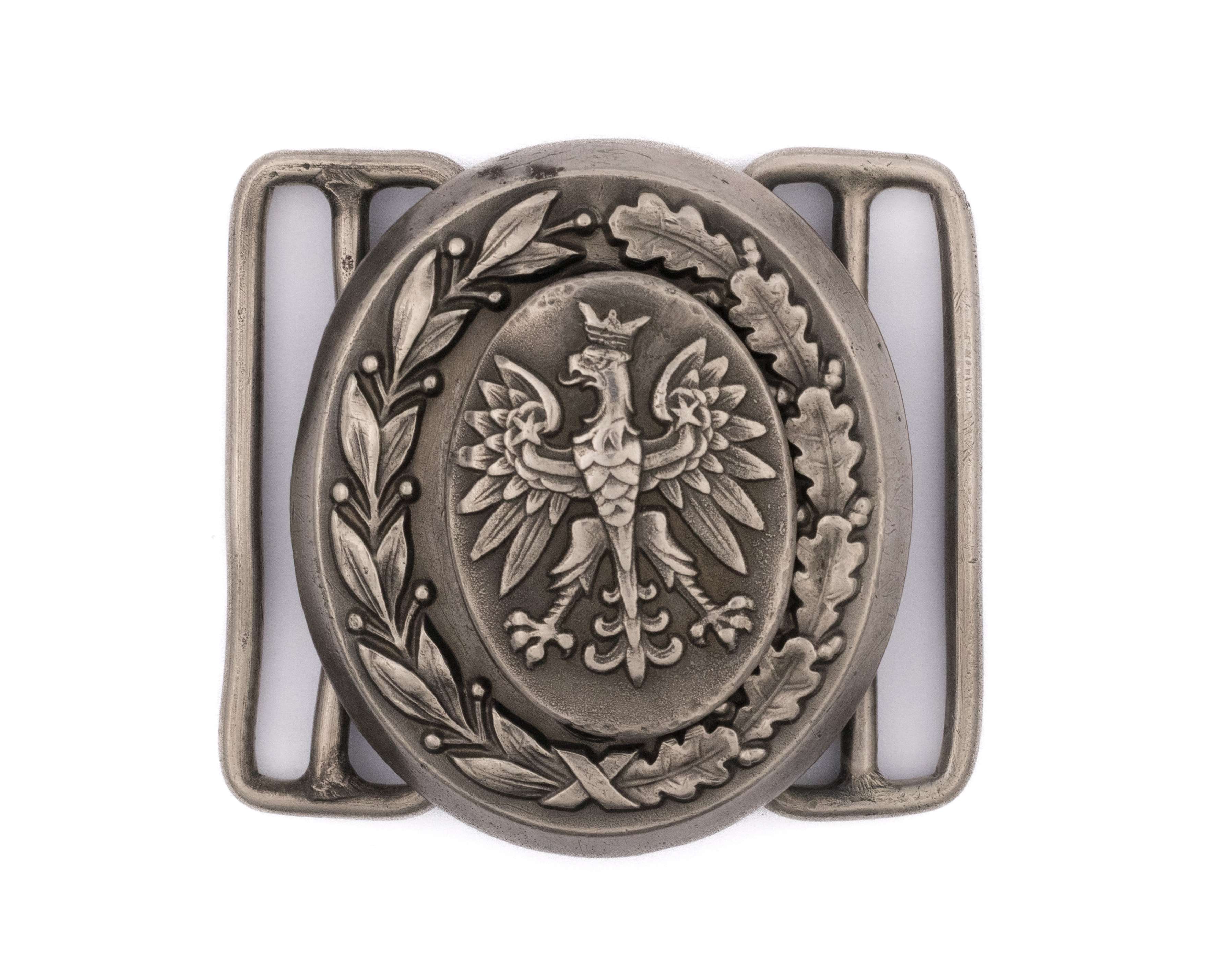 Pas do munduru oficera wojsk lądowych wz. 1952. Stan bardzo dobry. Podszyty suknem w komplecie ciekawa klamra z orłem w koronie (projekt?)