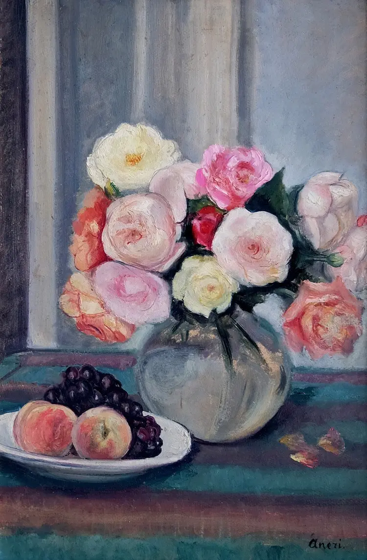 Olej, tektura,wym.:  62 x 42 cm, sygn. p.d.: Aneri.