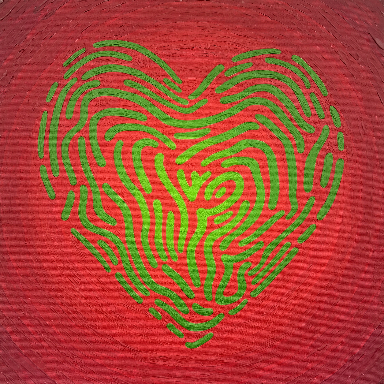 akryl / płótno, wym. 73 cm x 73 cm, sygn. na odwrocie: "THESEUS / "Przestrzeń serca II"/ MMXXV oraz pieczęc autorska", 2025 r.