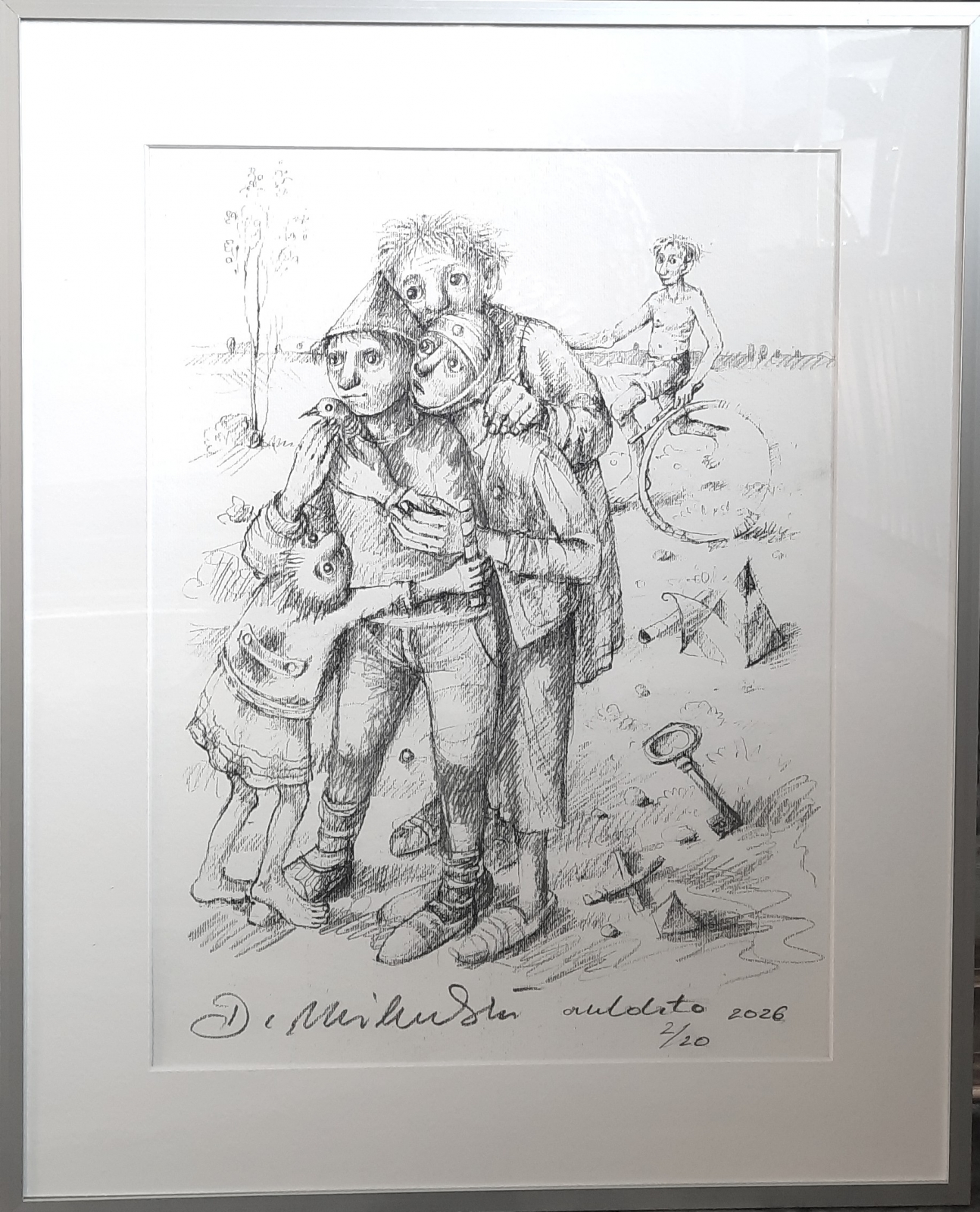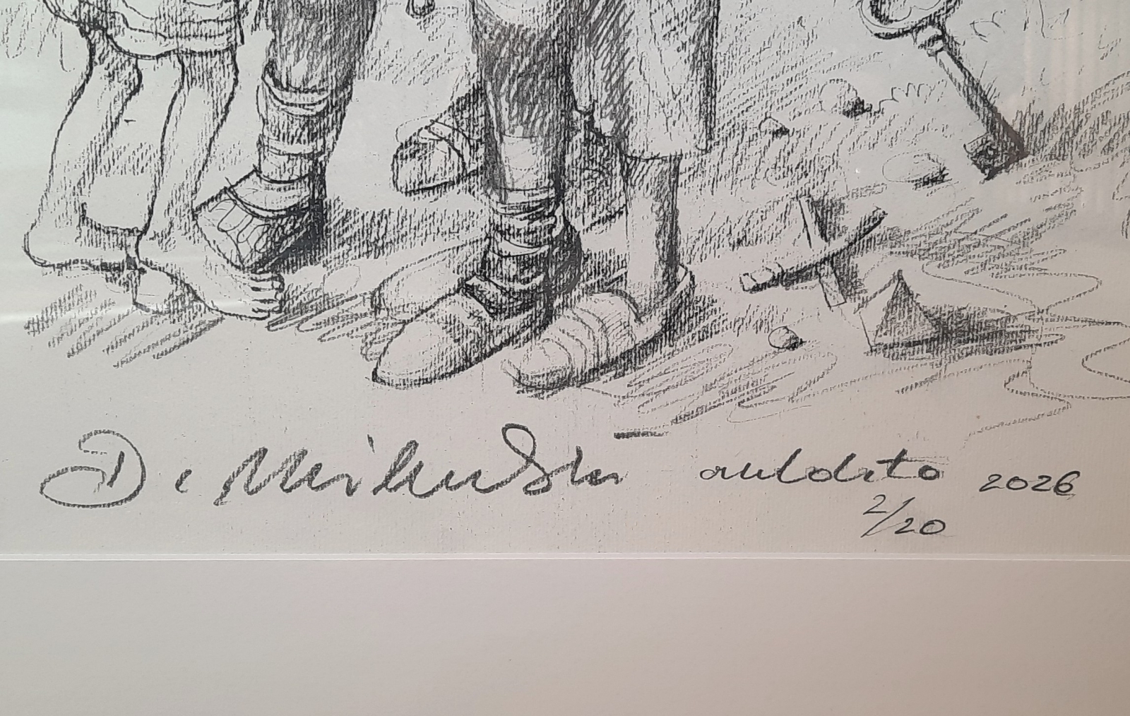 litografia / rysunek / papier; sygn. d.: 'D. Miliński autolito 2/20 2026', wymiary: 39 cm x 29 cm; grafika opisana autorsko na odwrocie; oprawa listwowa, passe-partout, szkło akrylowe; 2026 r