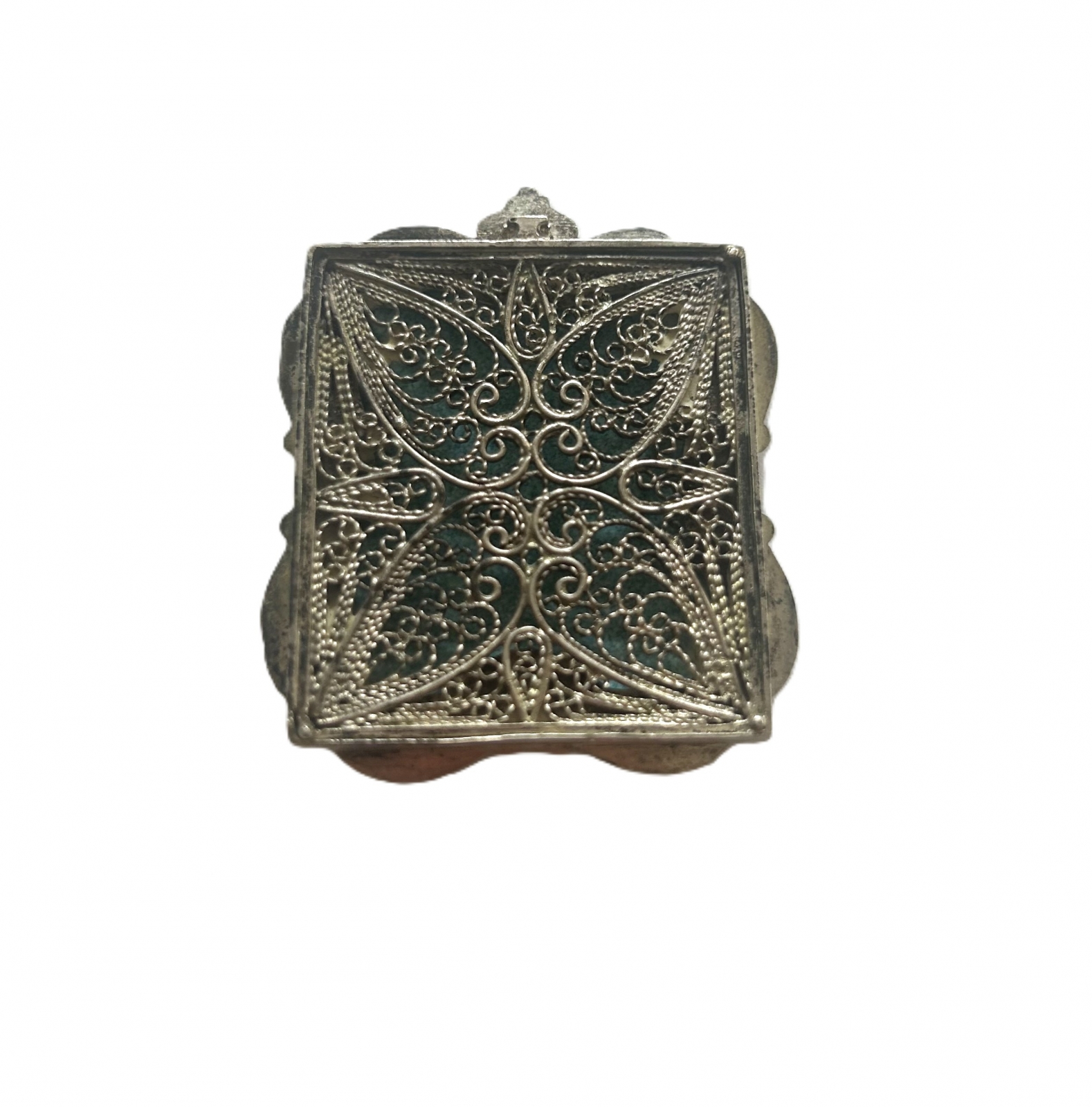 oprawa srebrna próby 875, odwrocie zdobione filigranem.