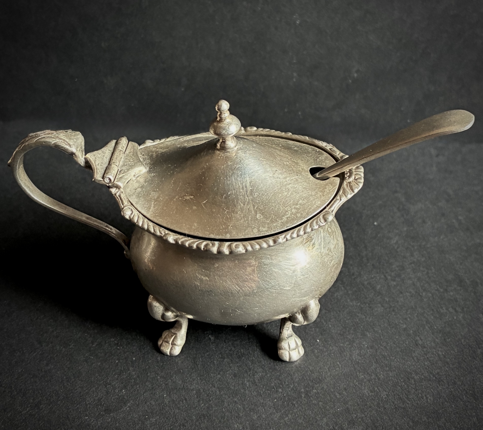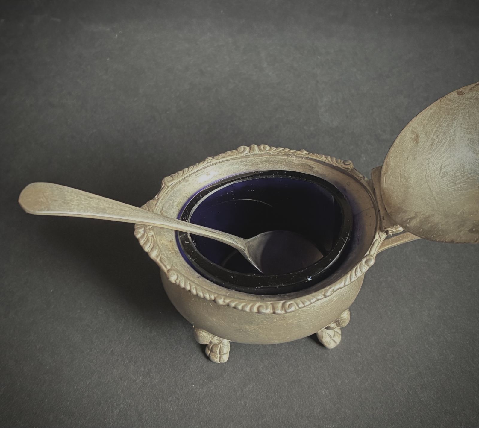 Solniczka srebro 925, Anglia, wkład szklany kobaltowy.