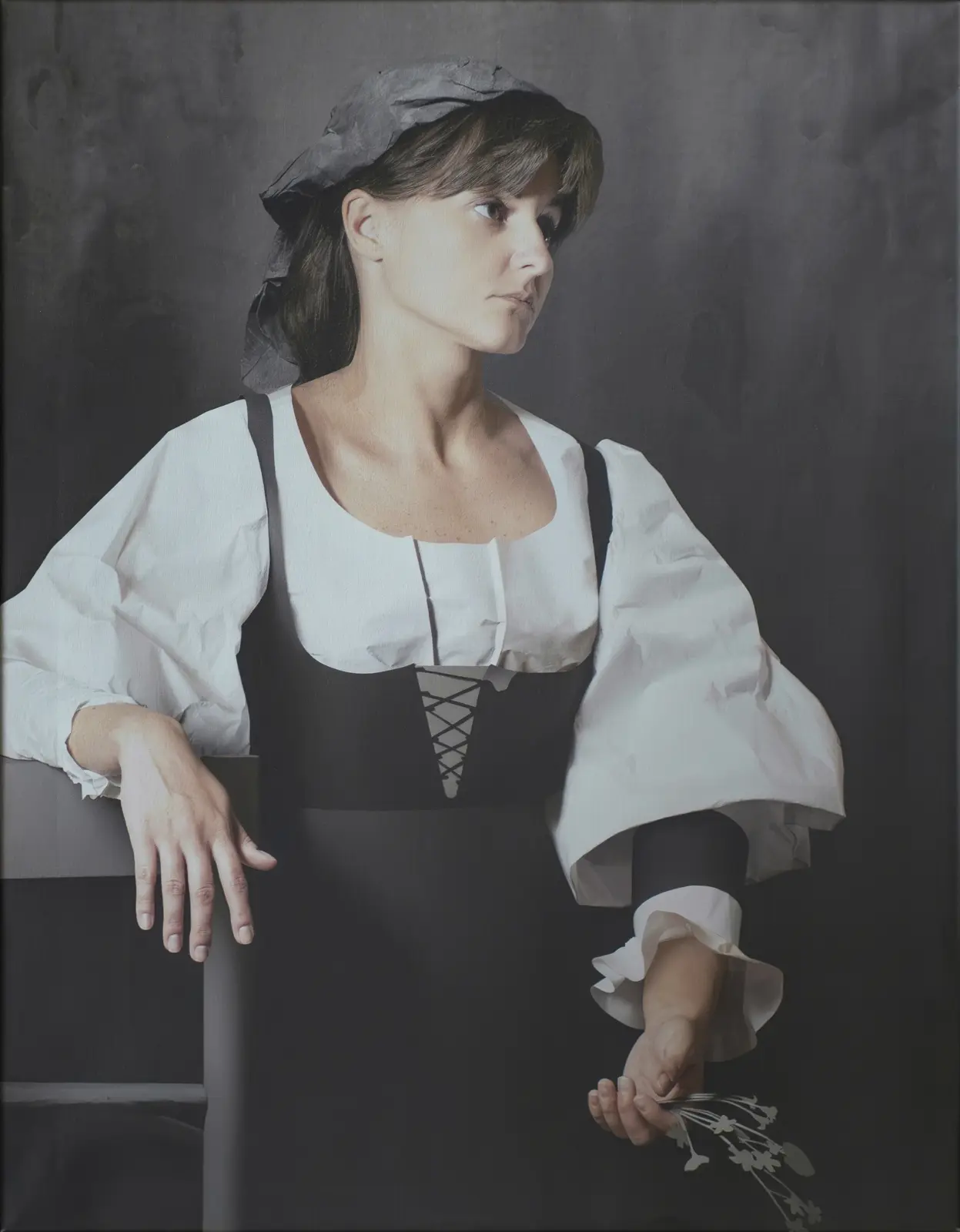 Rekonstrukcja obrazu „Włoszka” Anny Bilińskiej -Bohdanowicz, 70 x 90 cm, fotografia przetworzona cyfrowo, druk na płótnie, 2018. Opis autorski na odwrocie, naklejka Ministerstwa Kultury i Dziedzictwa Narodowego.