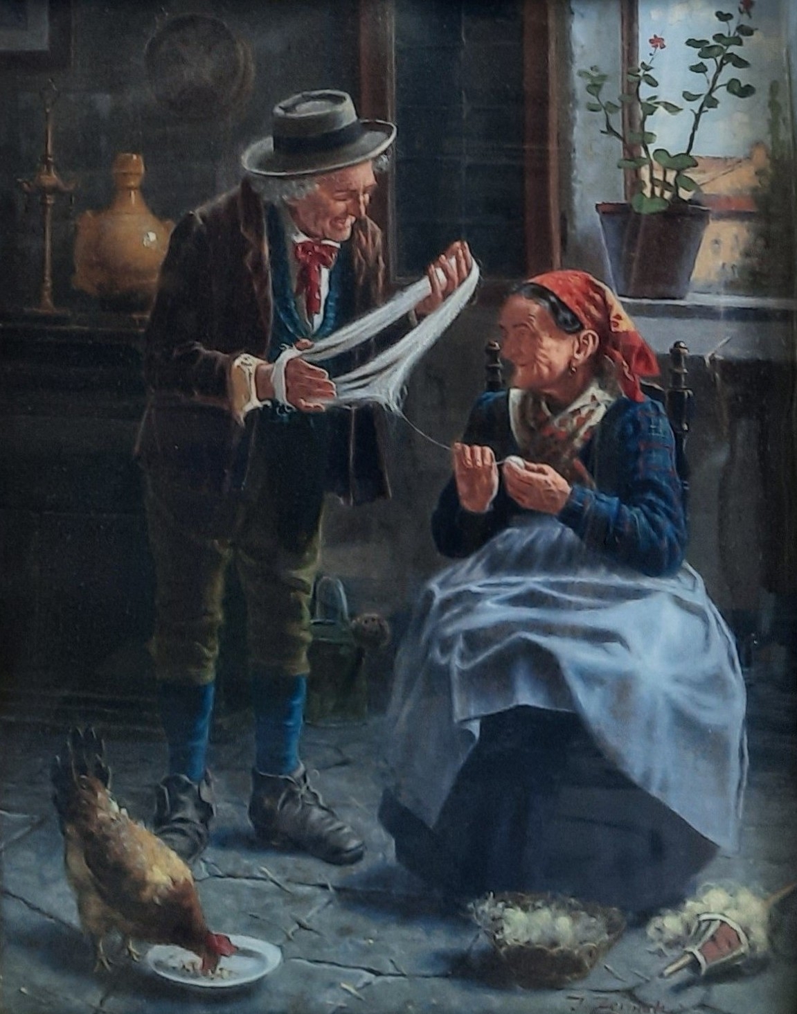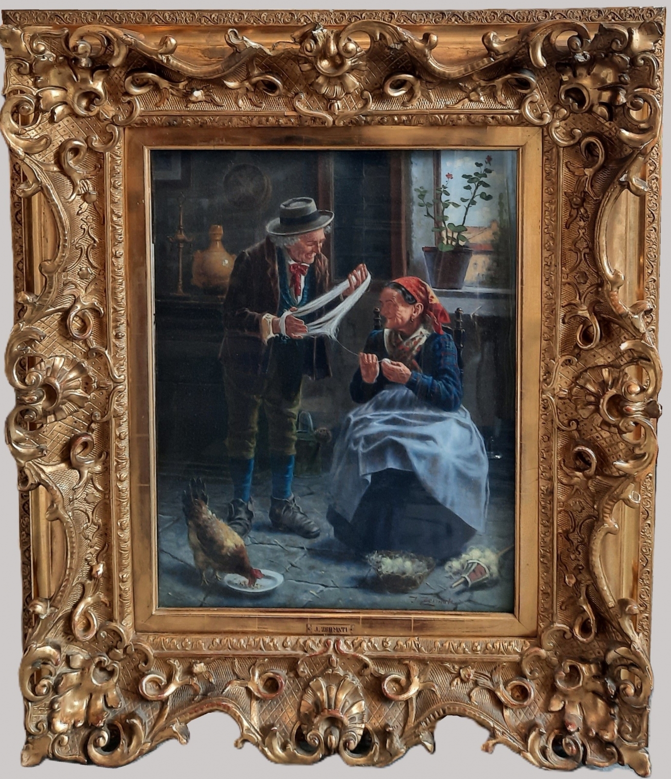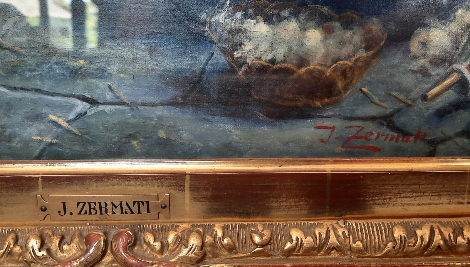 olej / płótno, wym. 57,5 cm x 44,5 cm, sygn. p.d. J. Zermati; ok. 1900 r.; oprawa drewniana, aplikacje gipsowe, złocenia, szklenie; stan zachowania - ubytki ramy